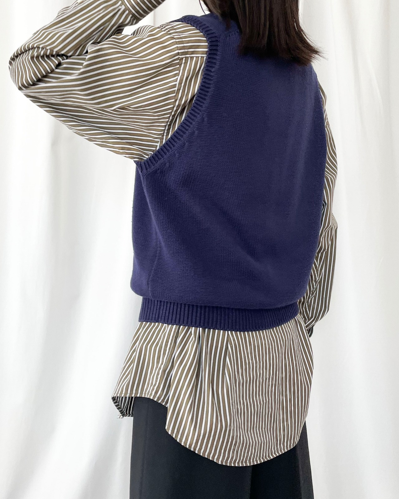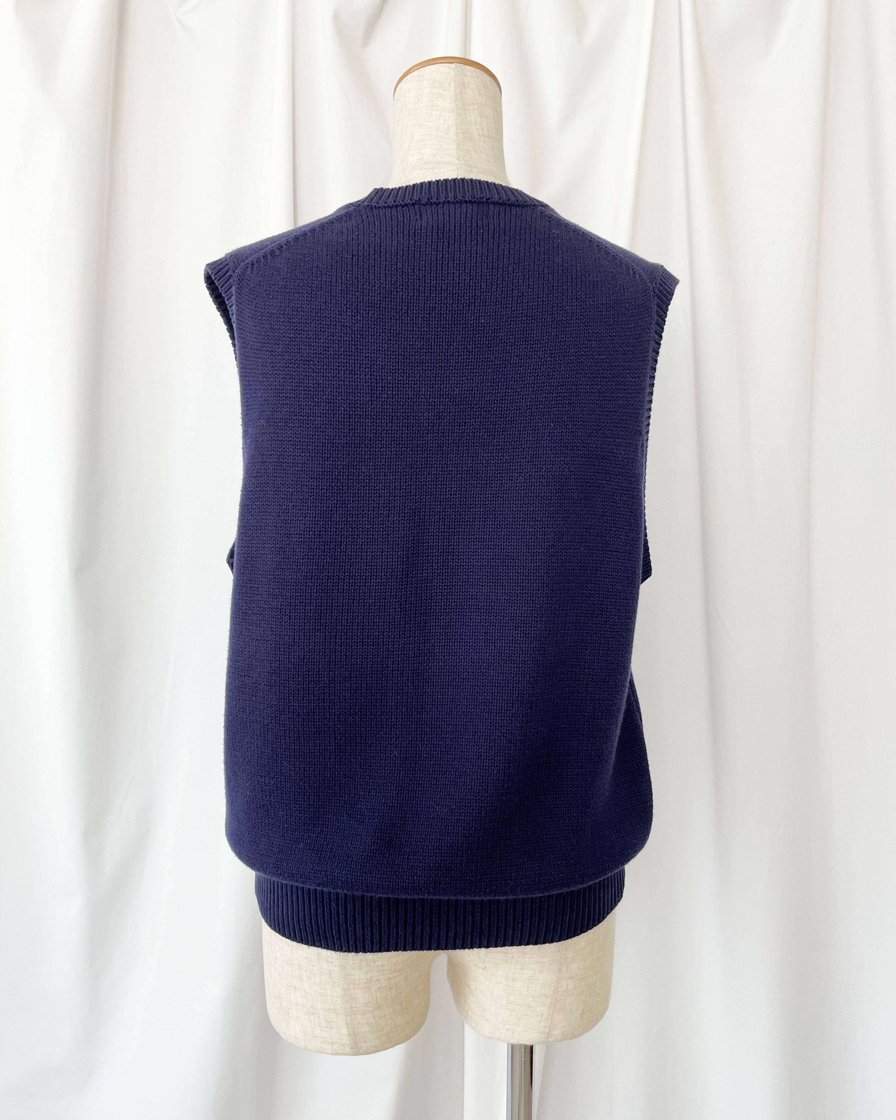 ネイビーカラー、シンプルなコットンベスト。