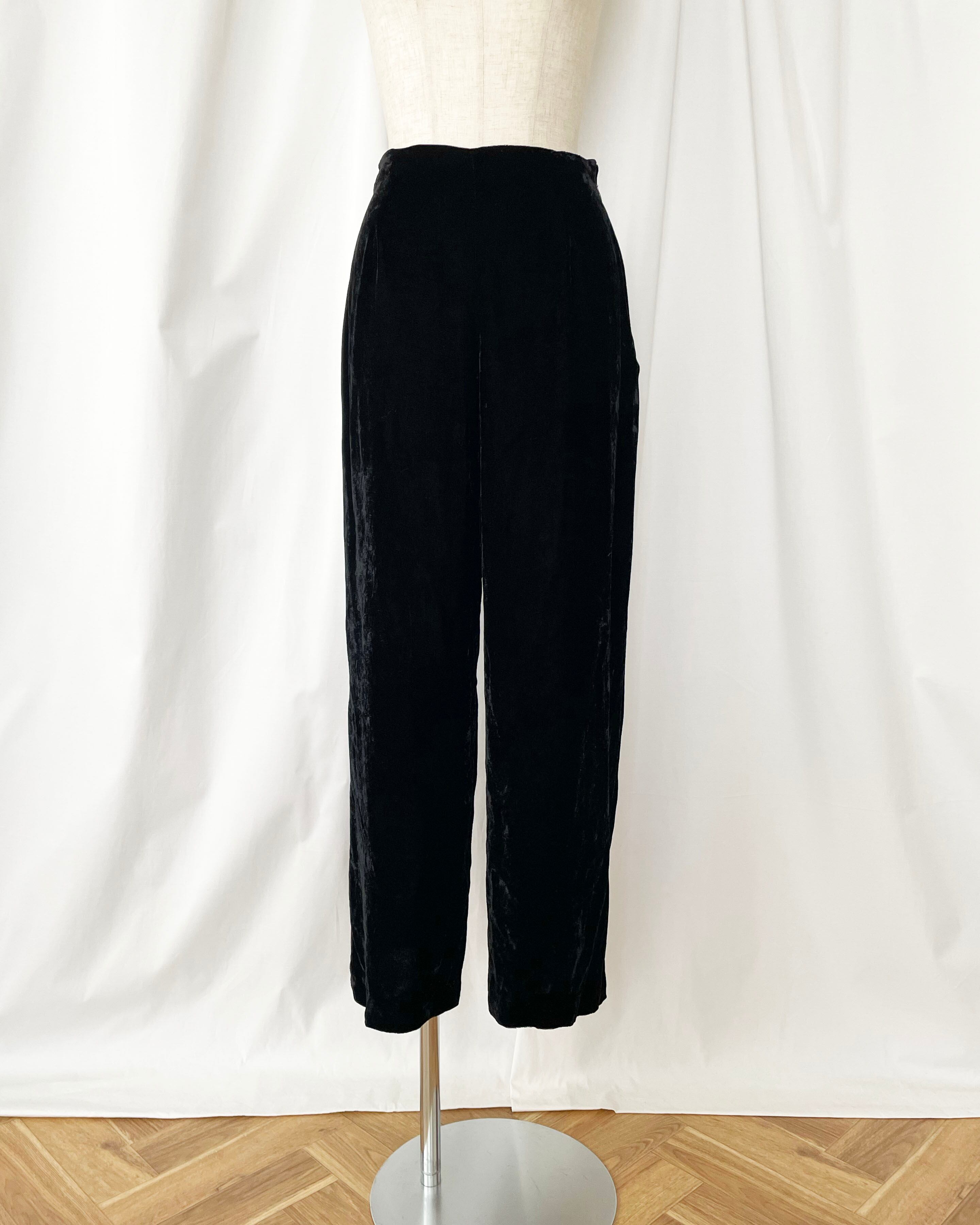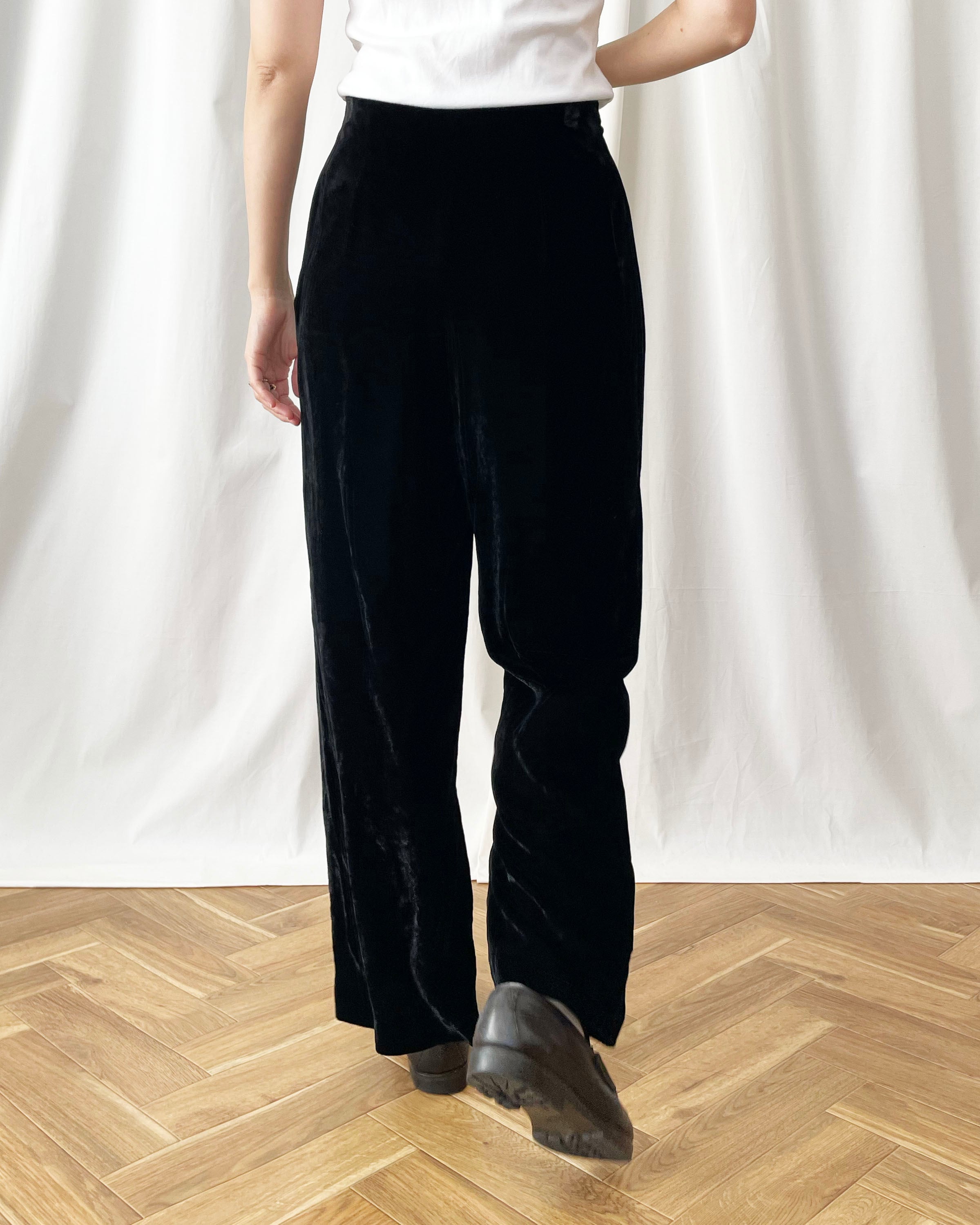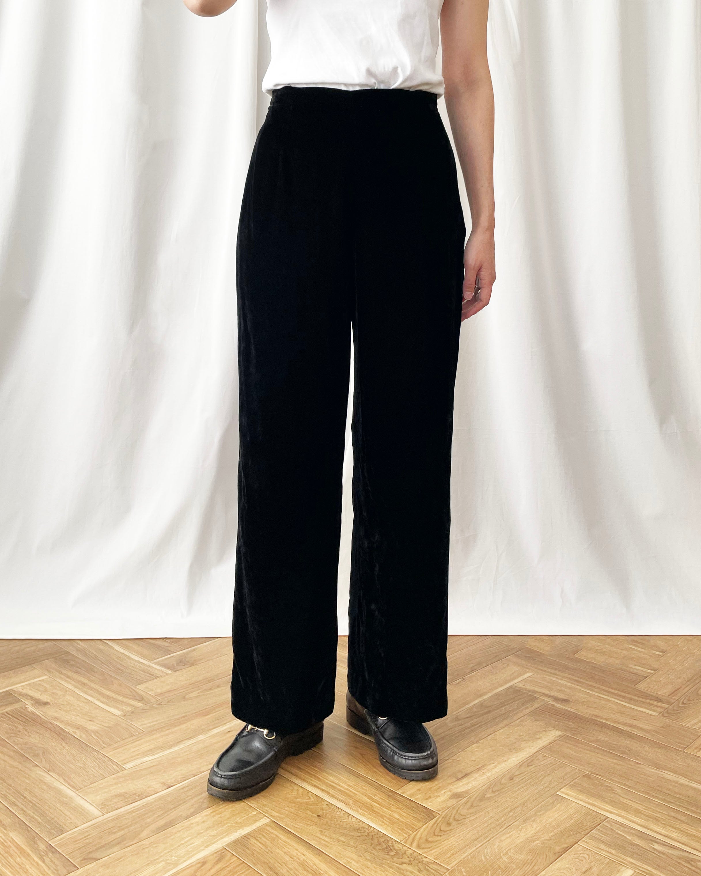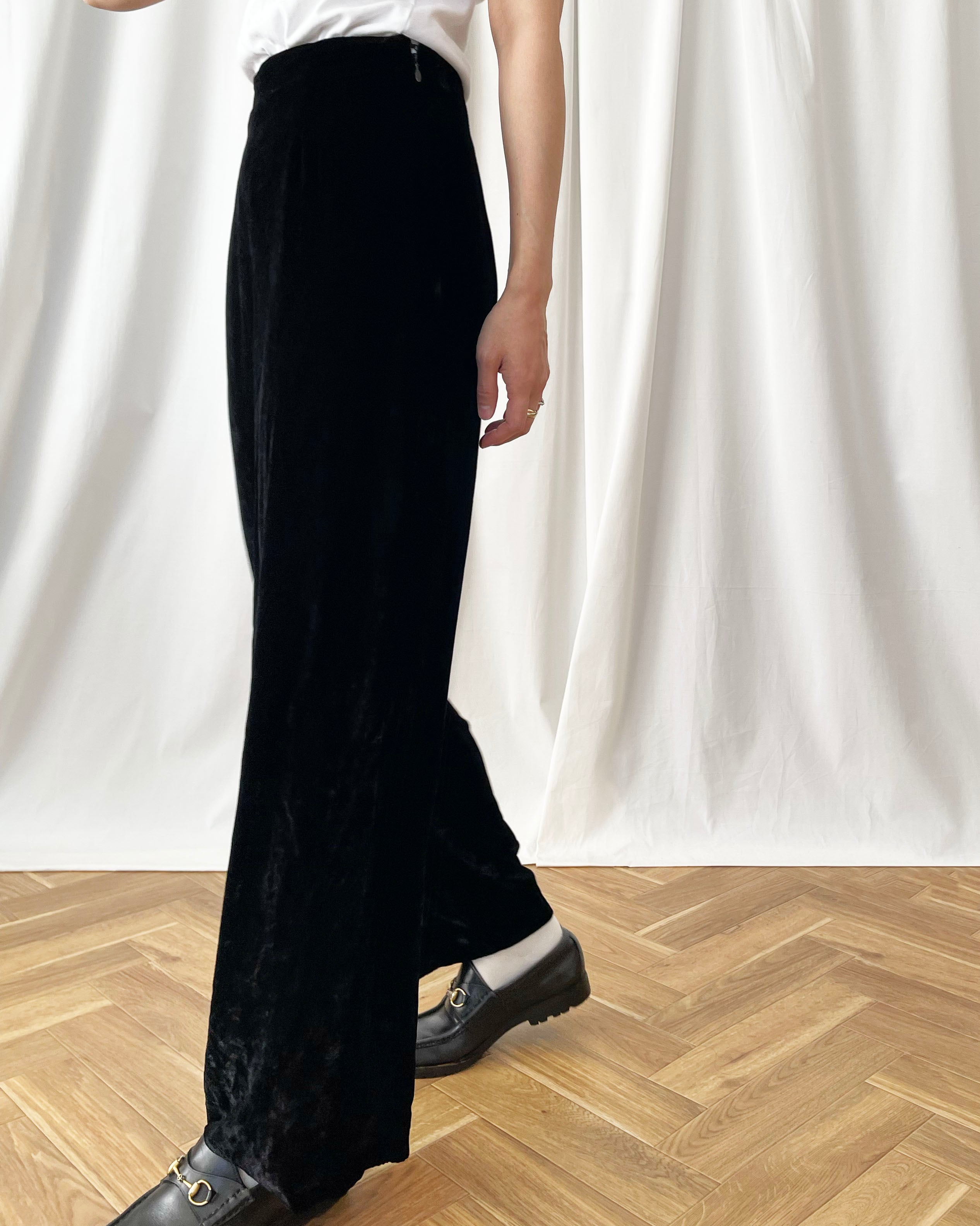 シンプルな黒ベロアパンツ。