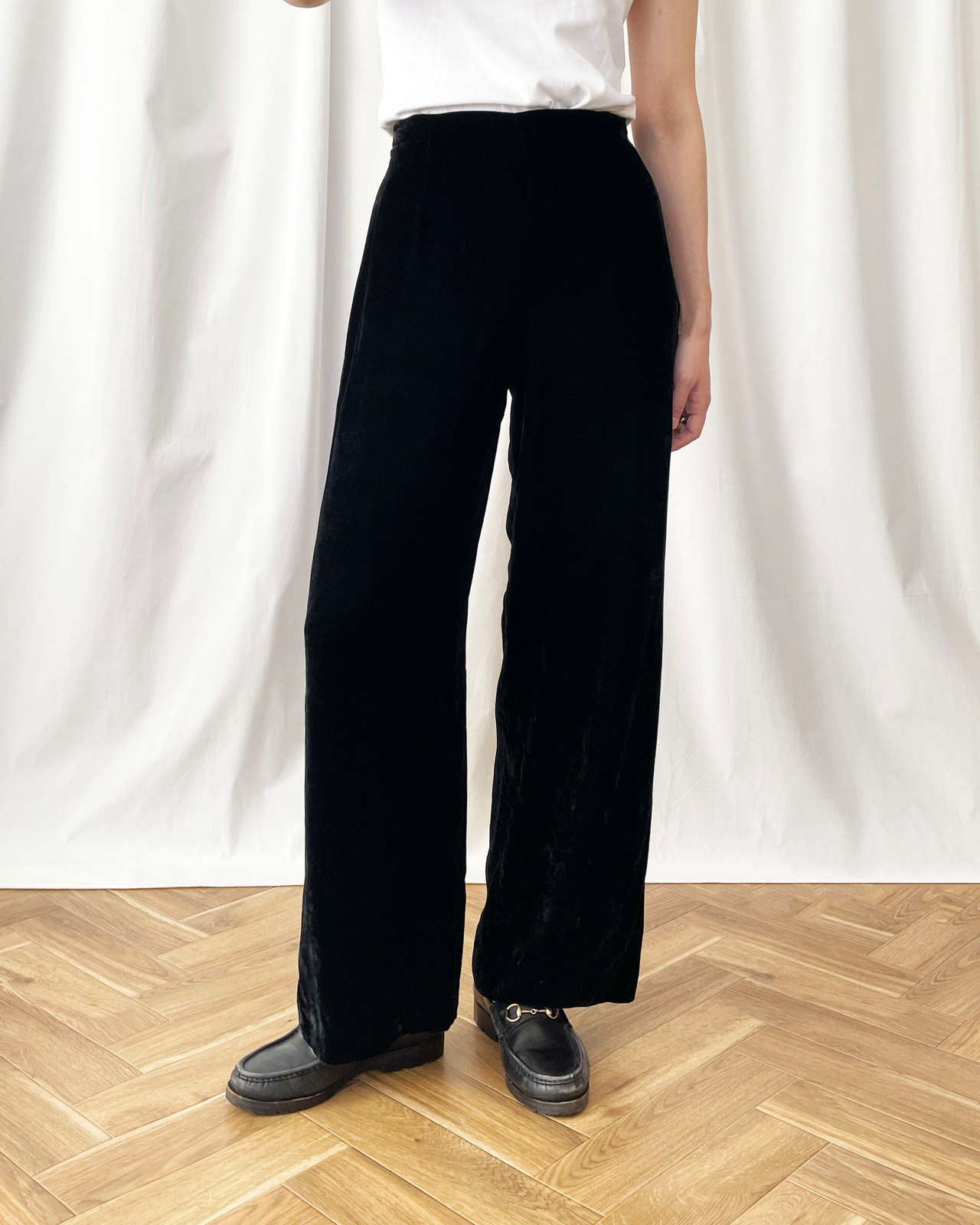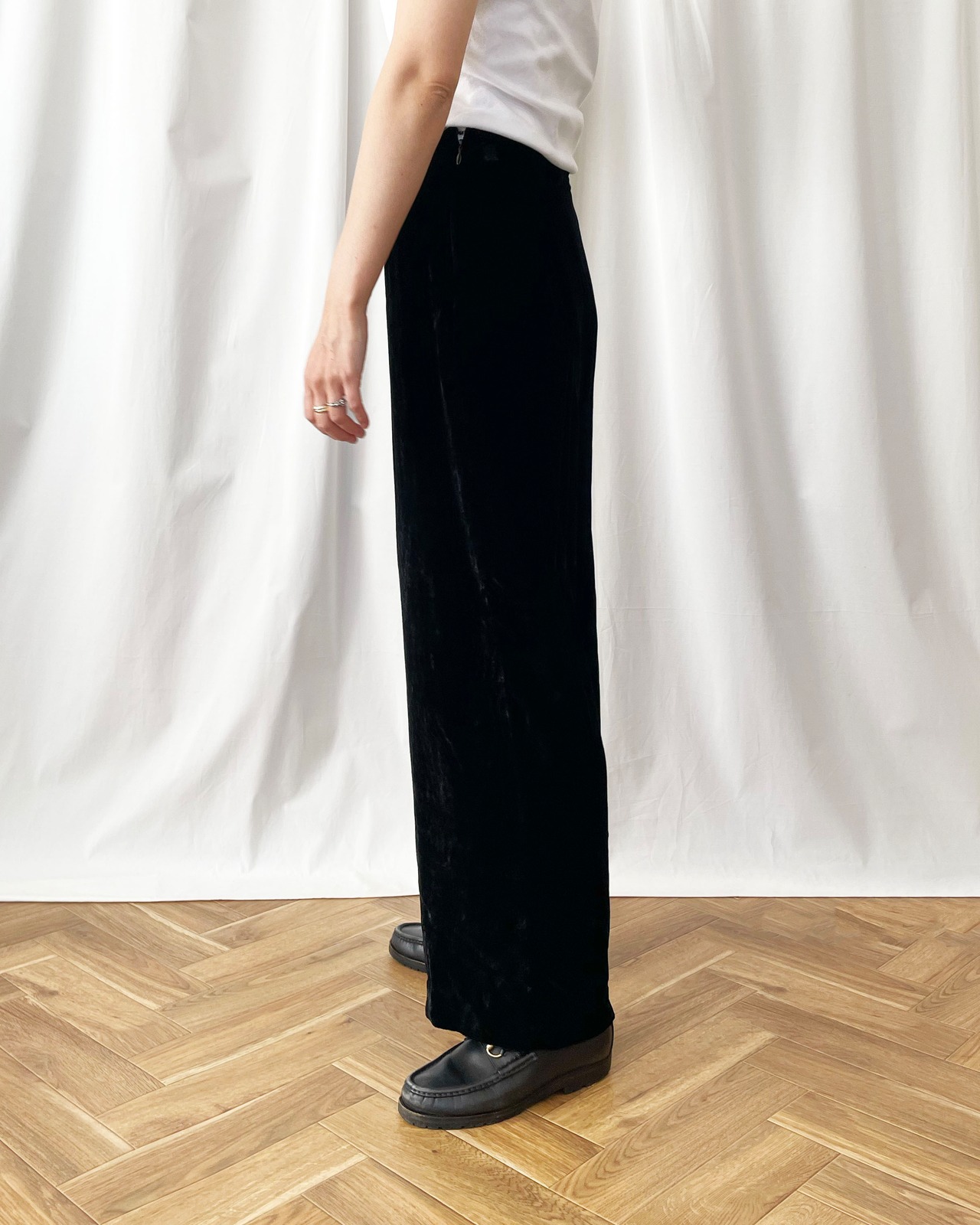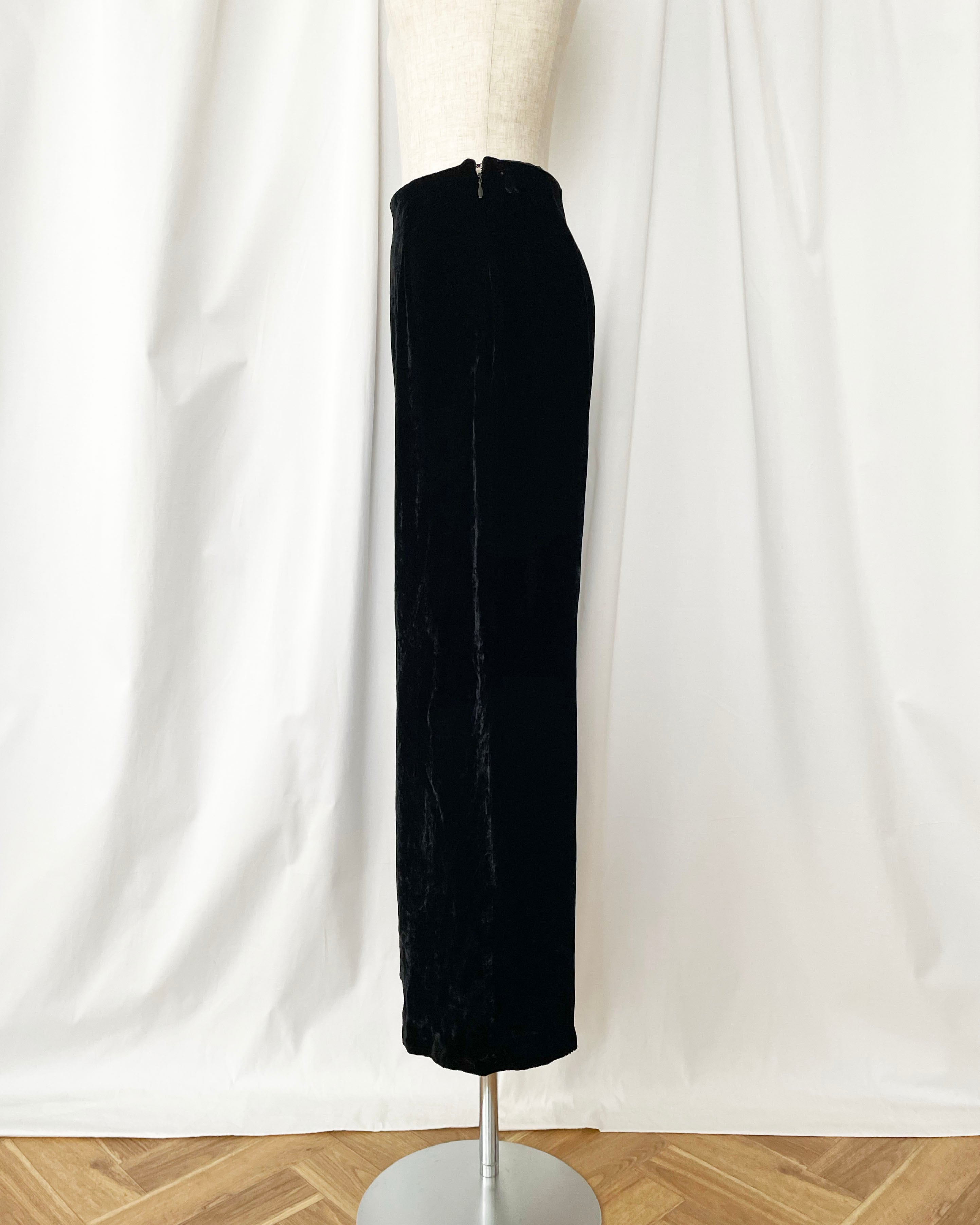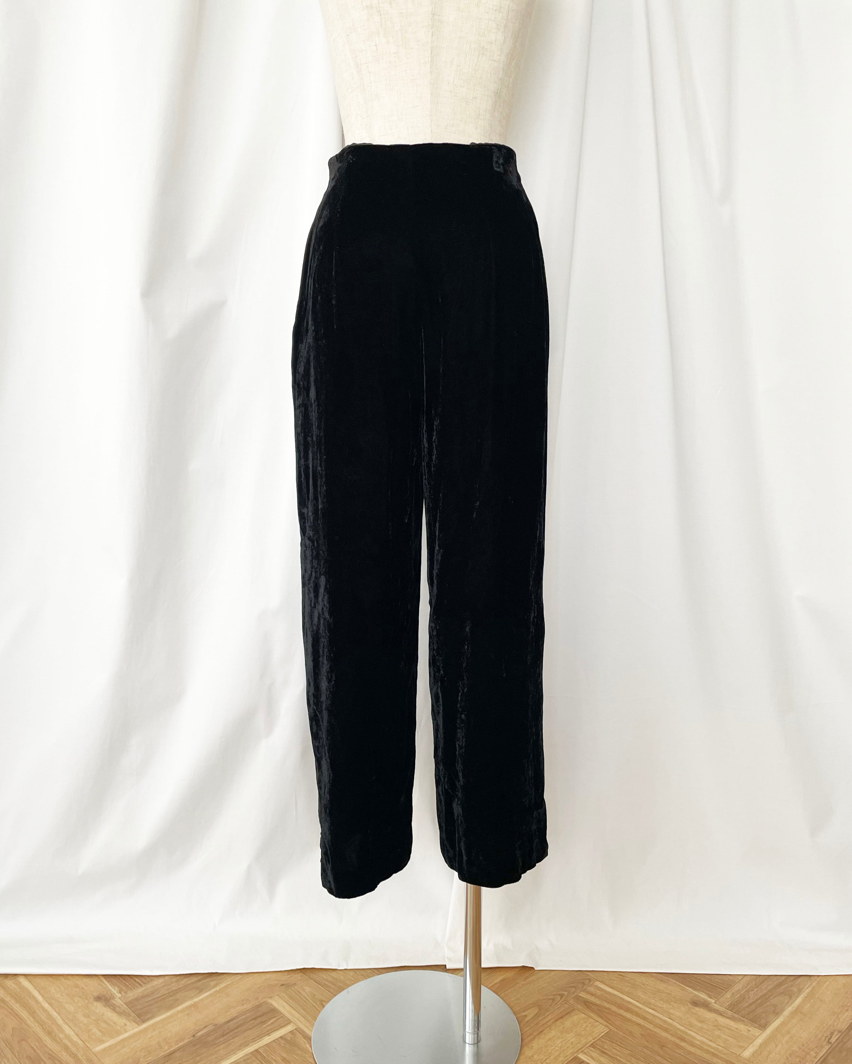 シンプルな黒ベロアパンツ。