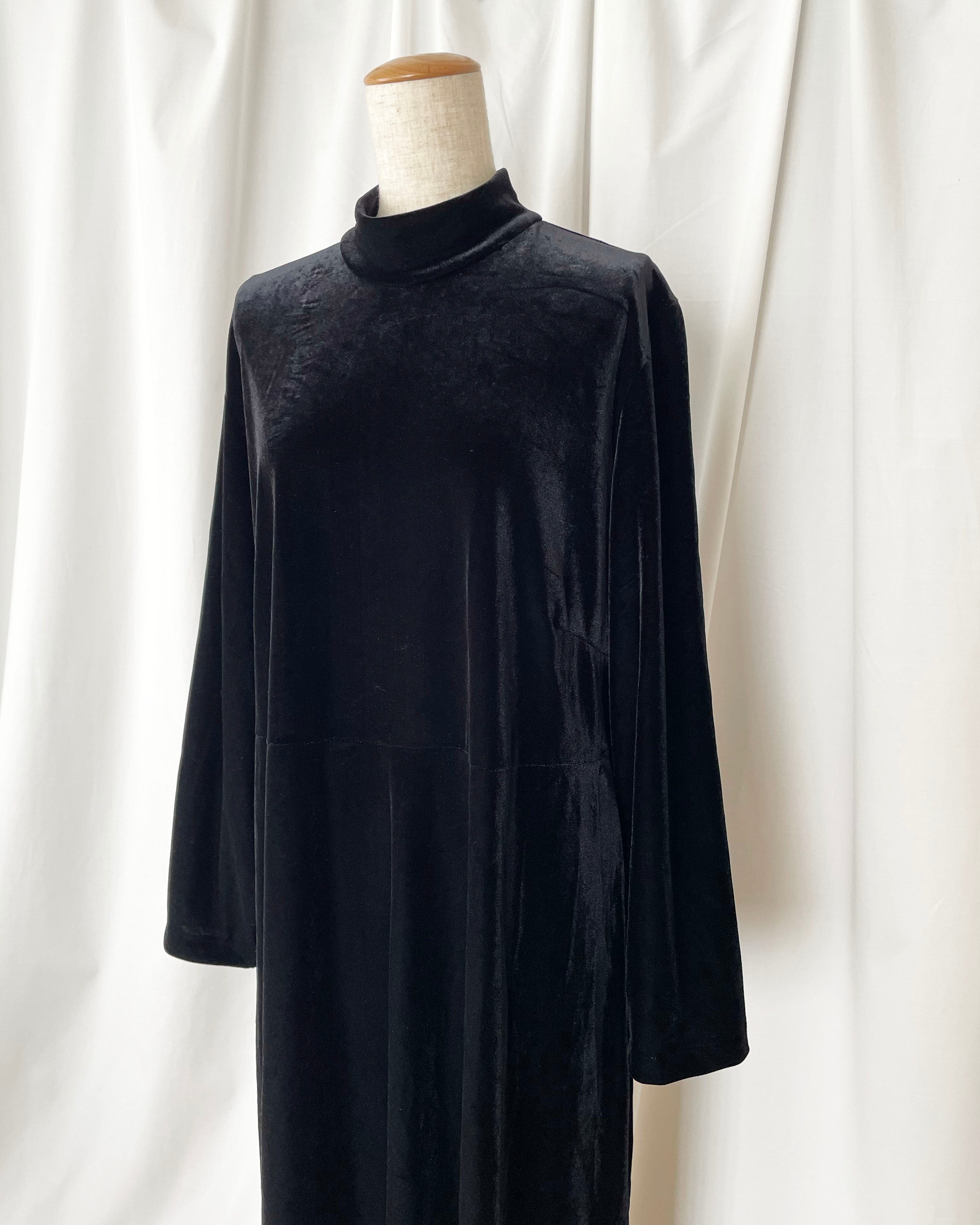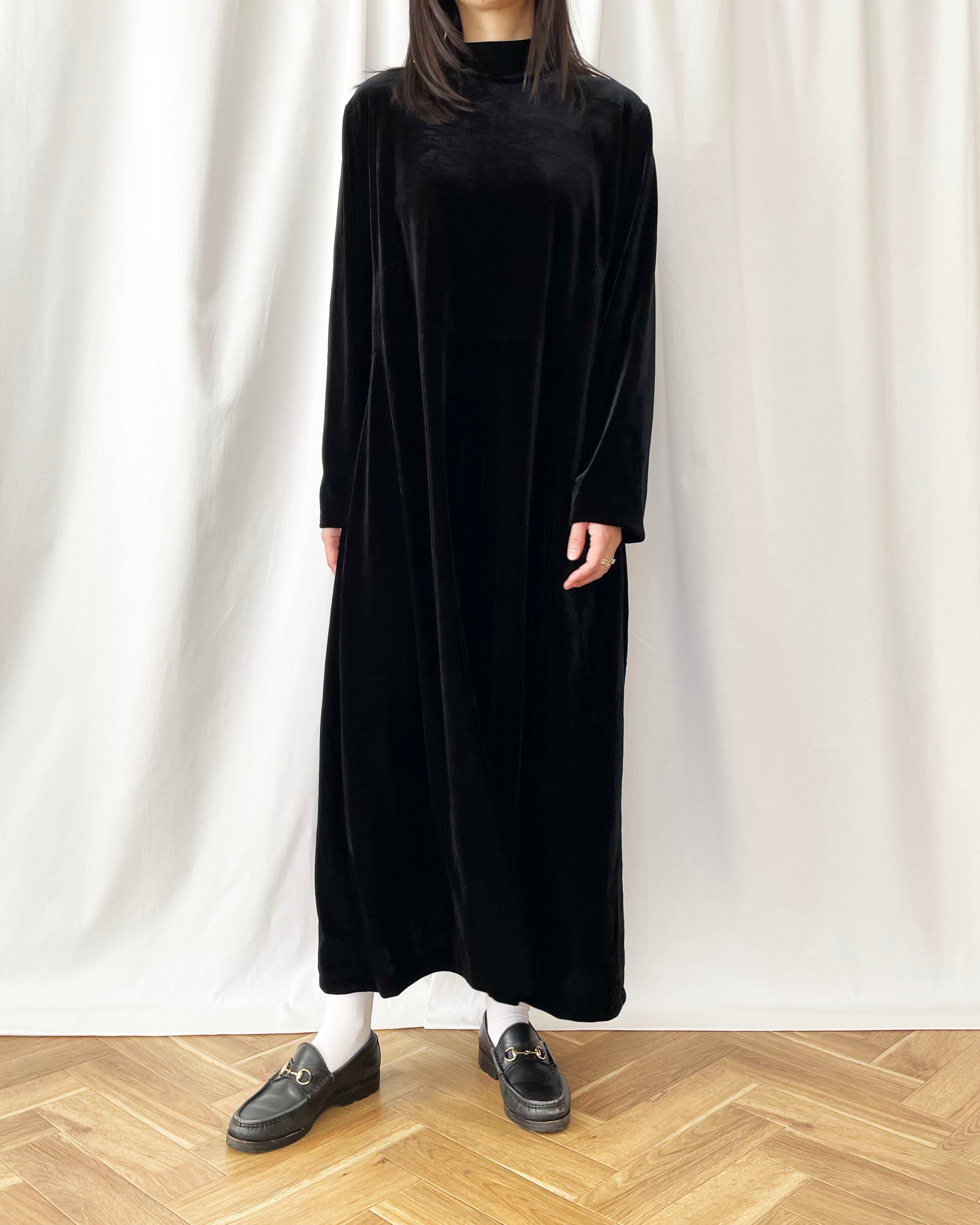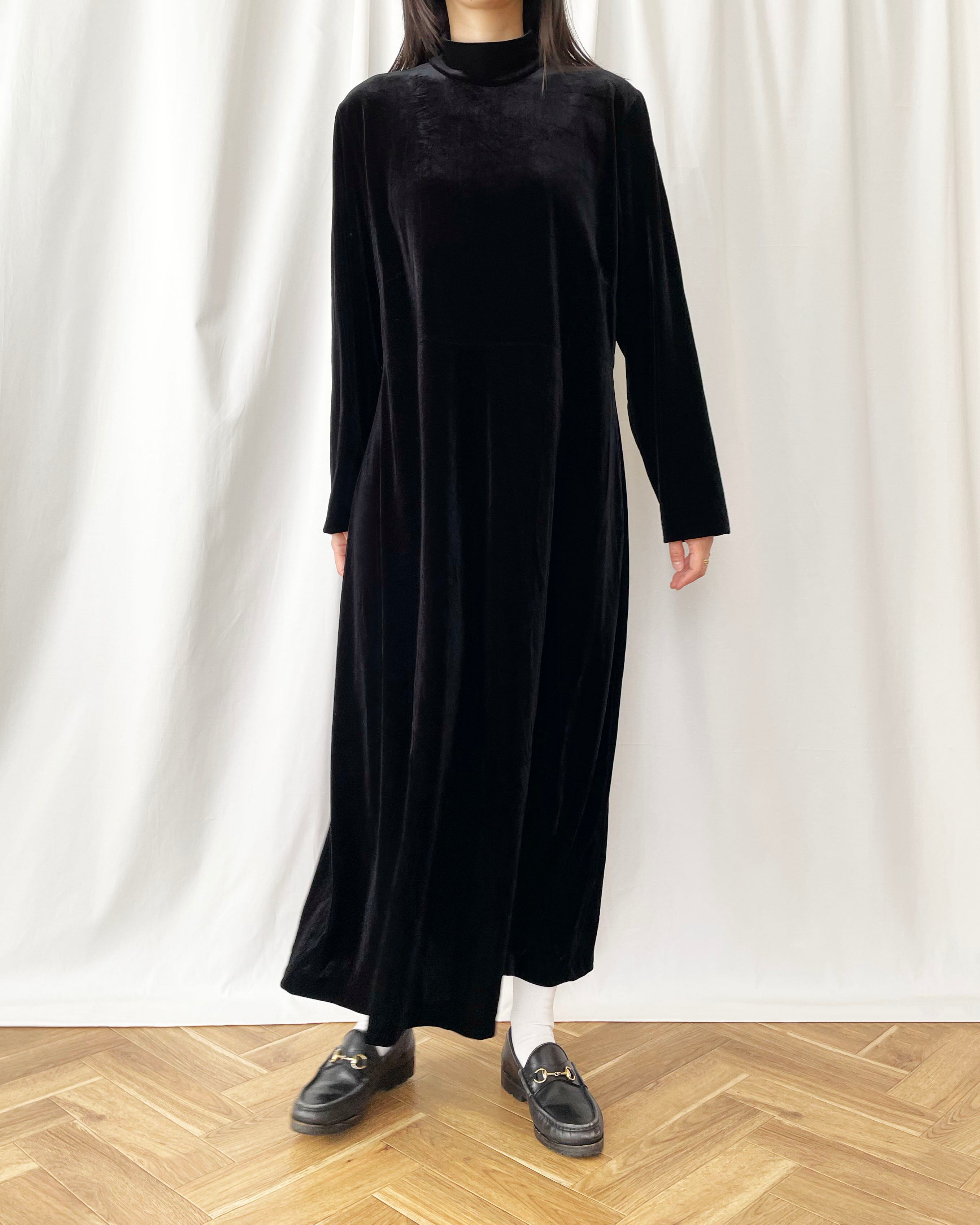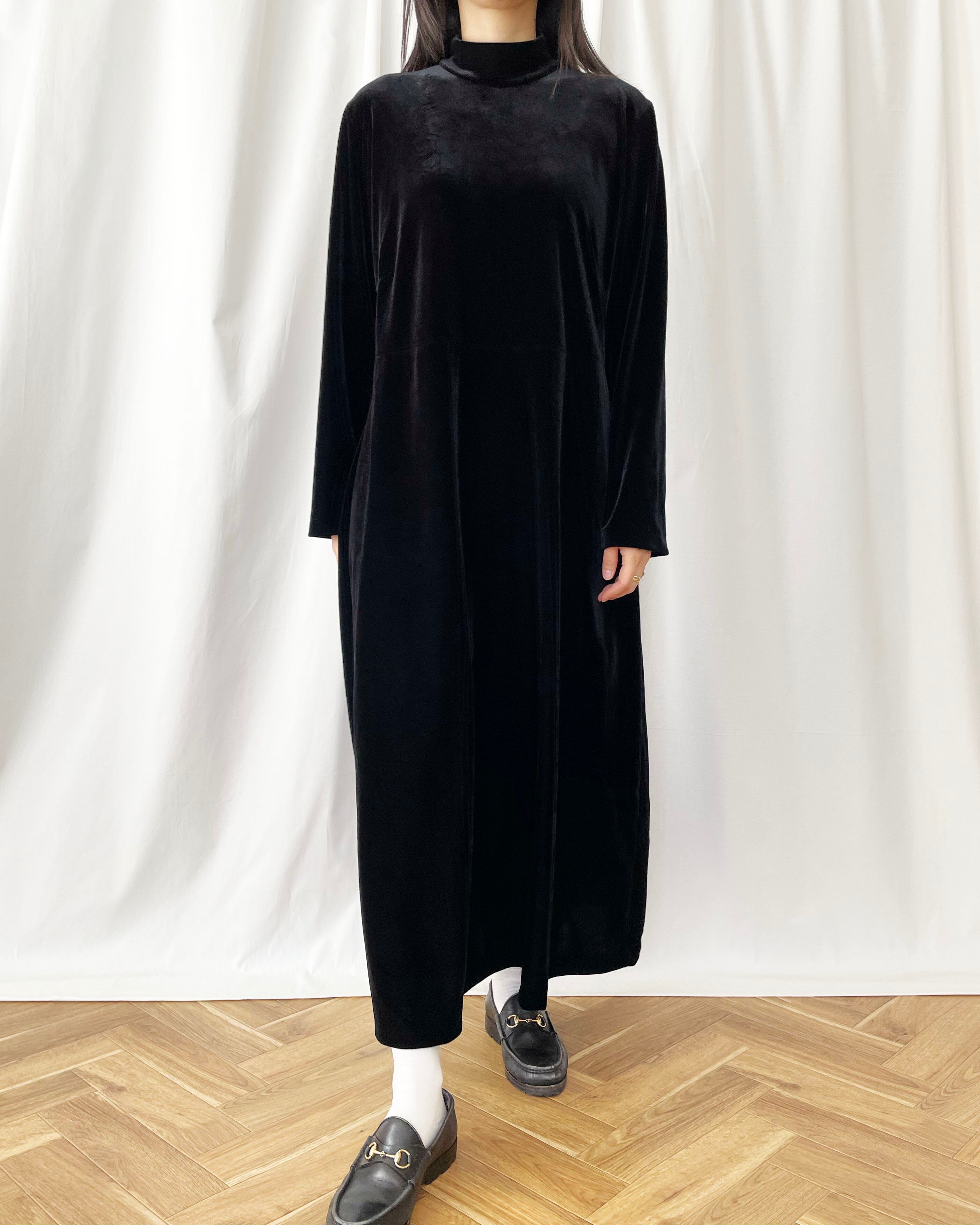 黒ベロア、モックネック+長袖のワンピース。
