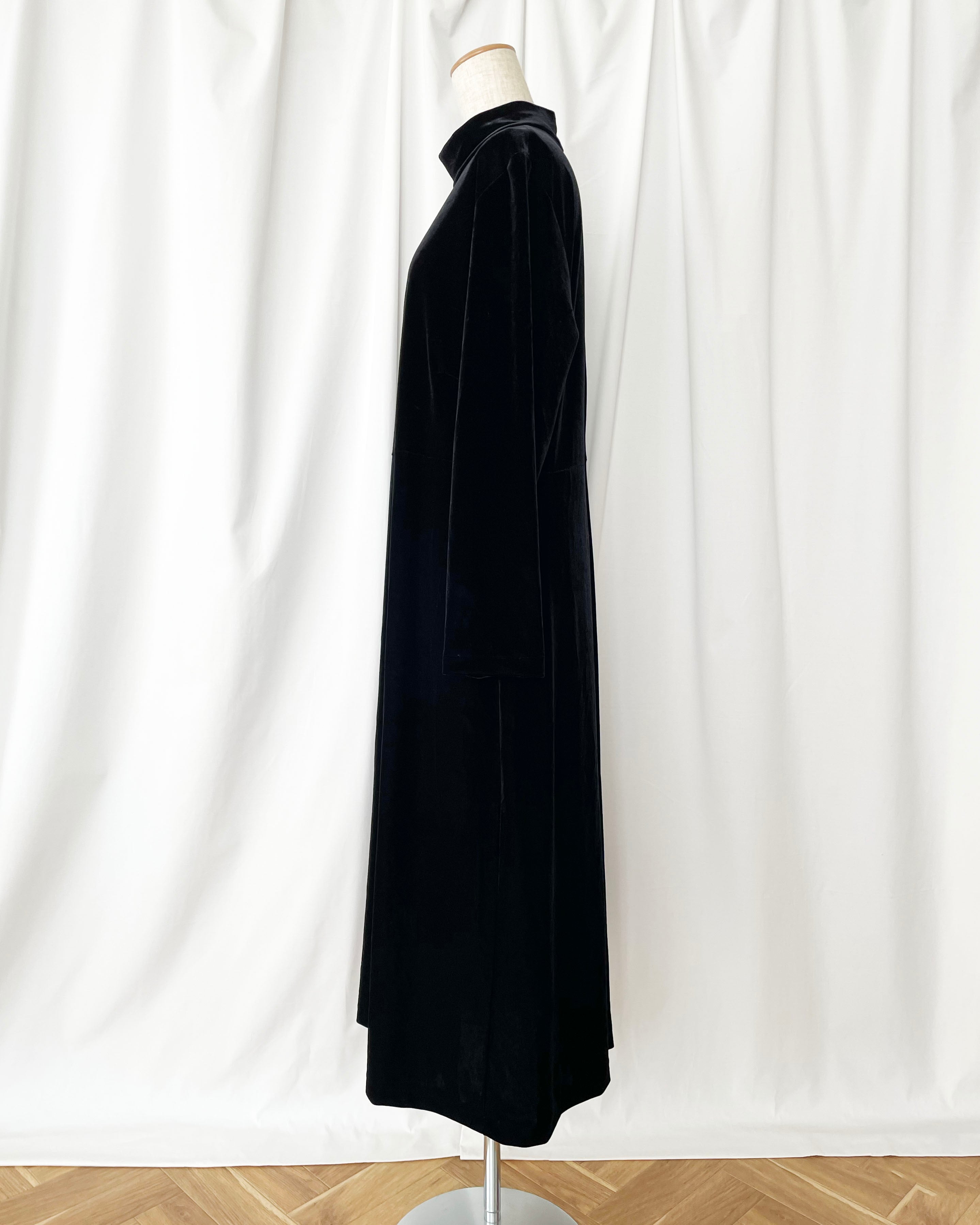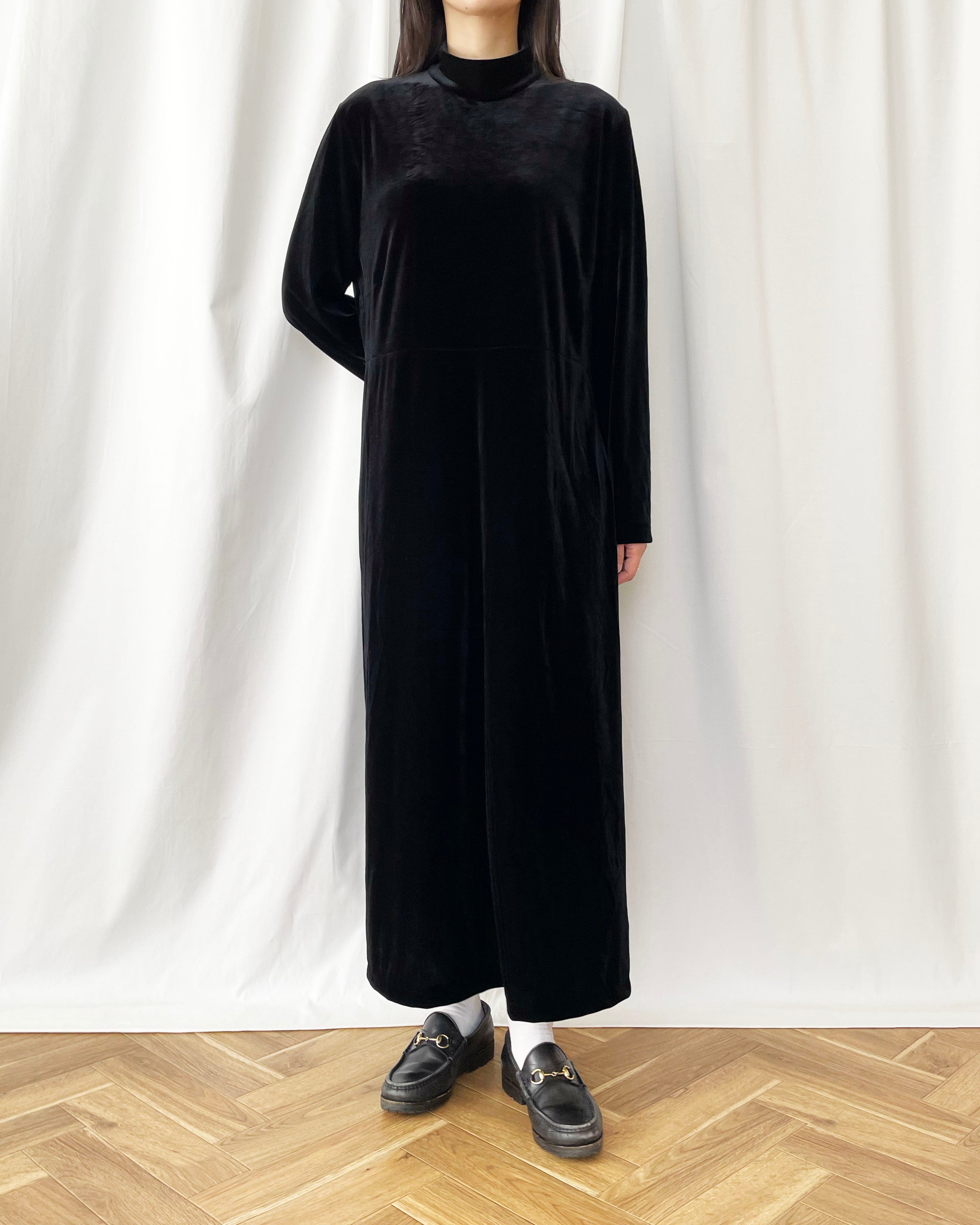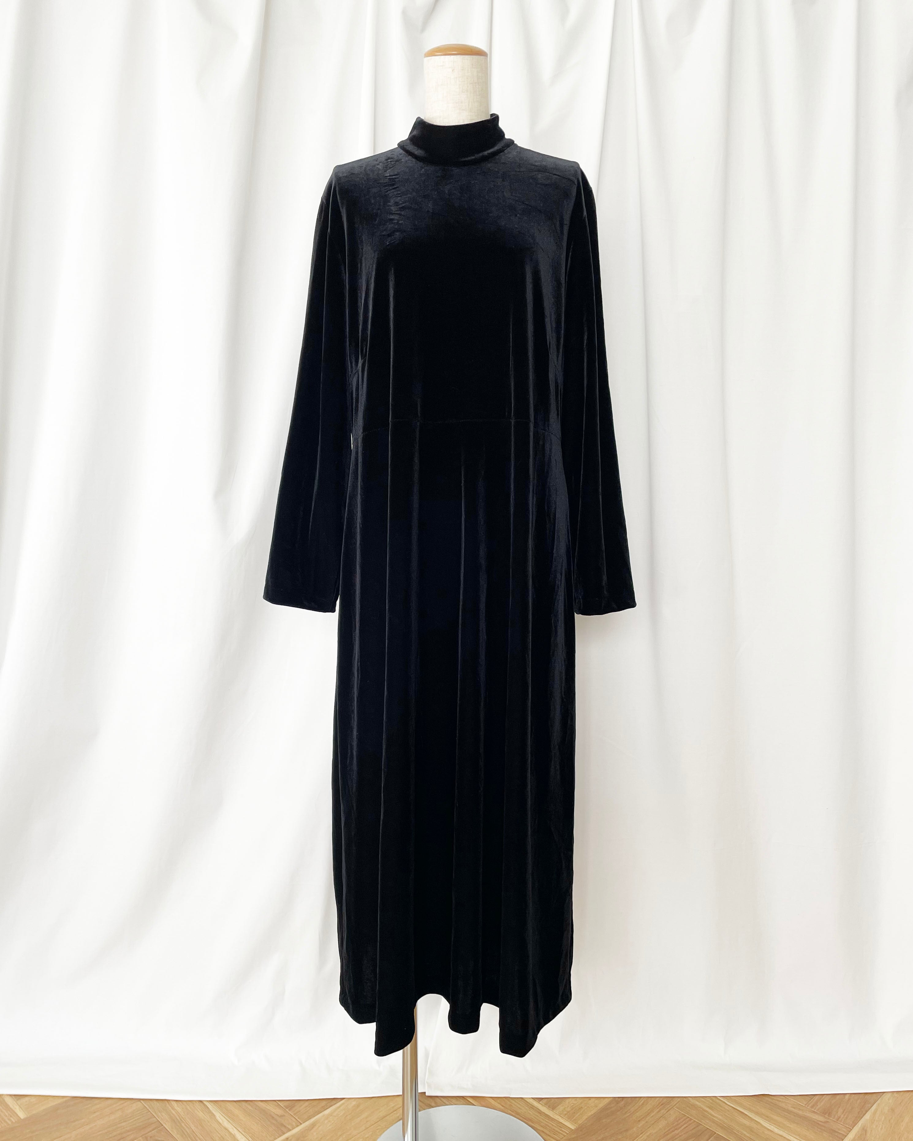 黒ベロア、モックネック+長袖のワンピース。