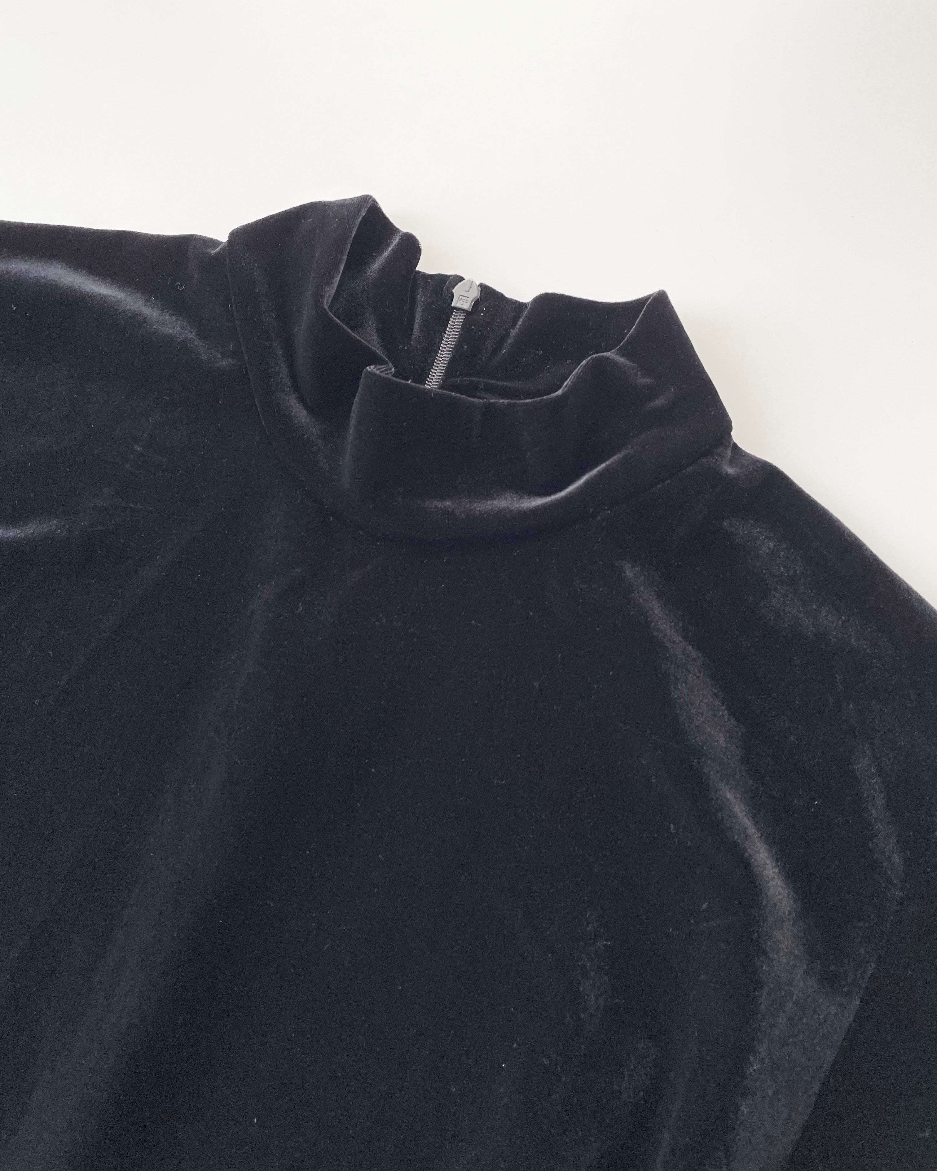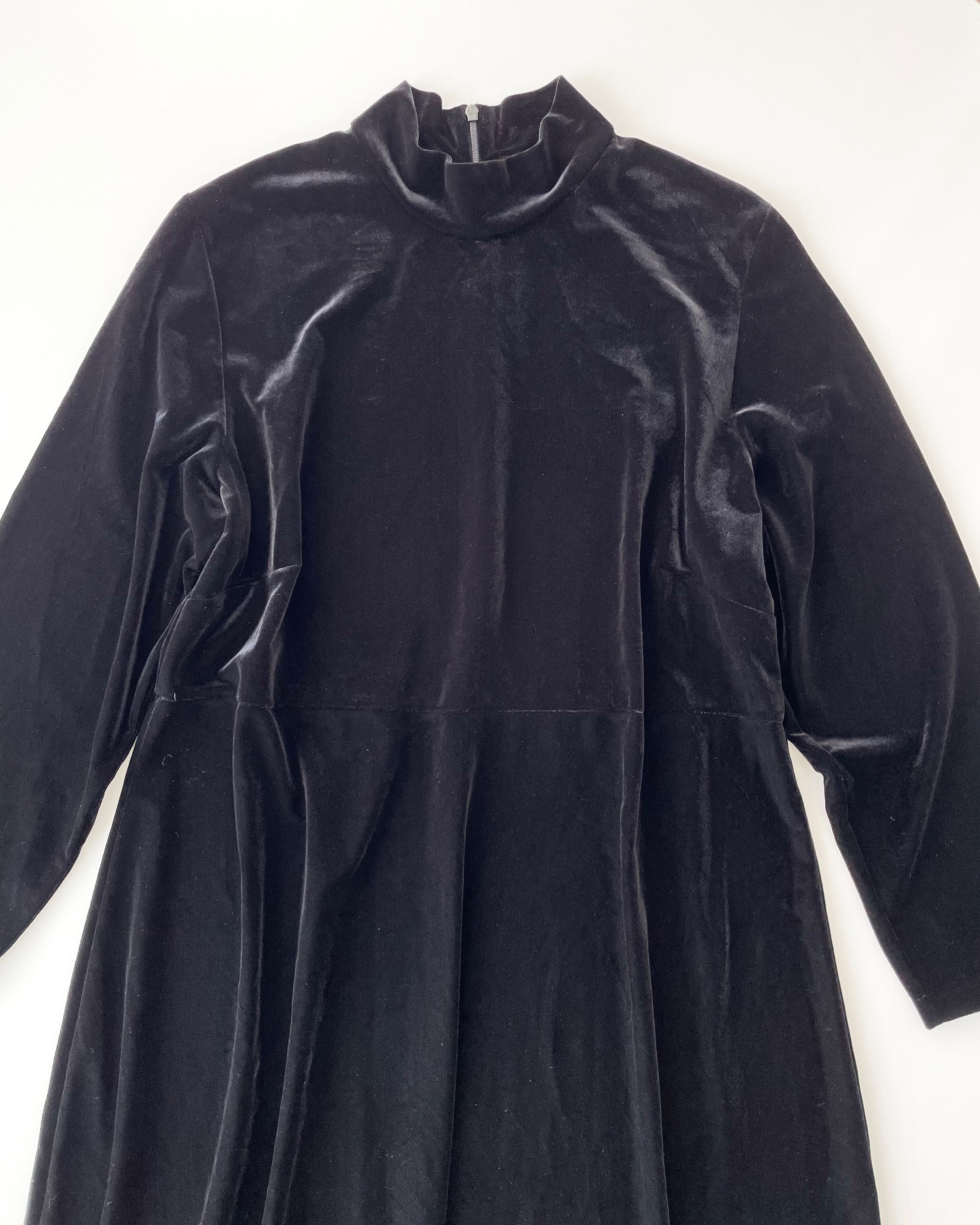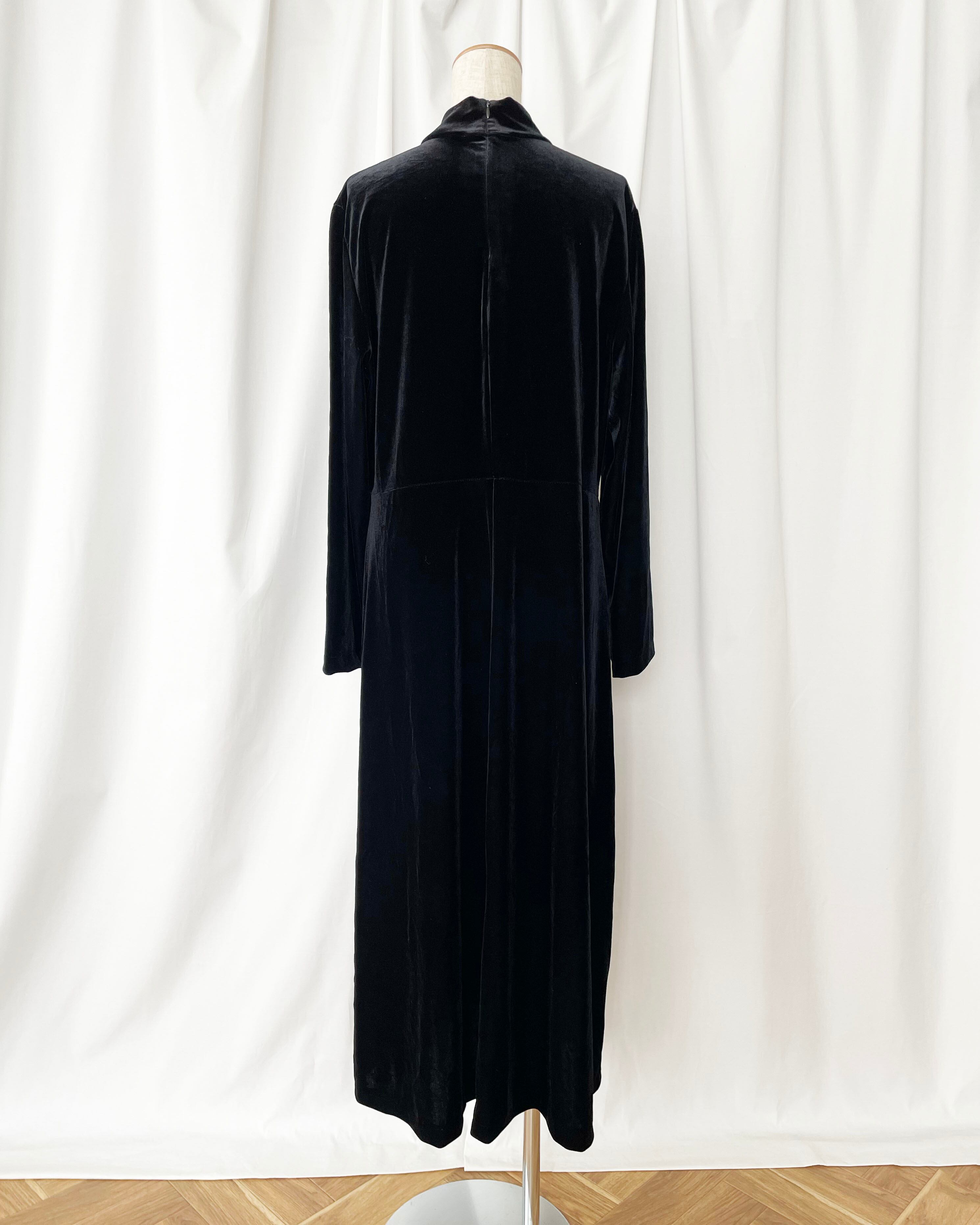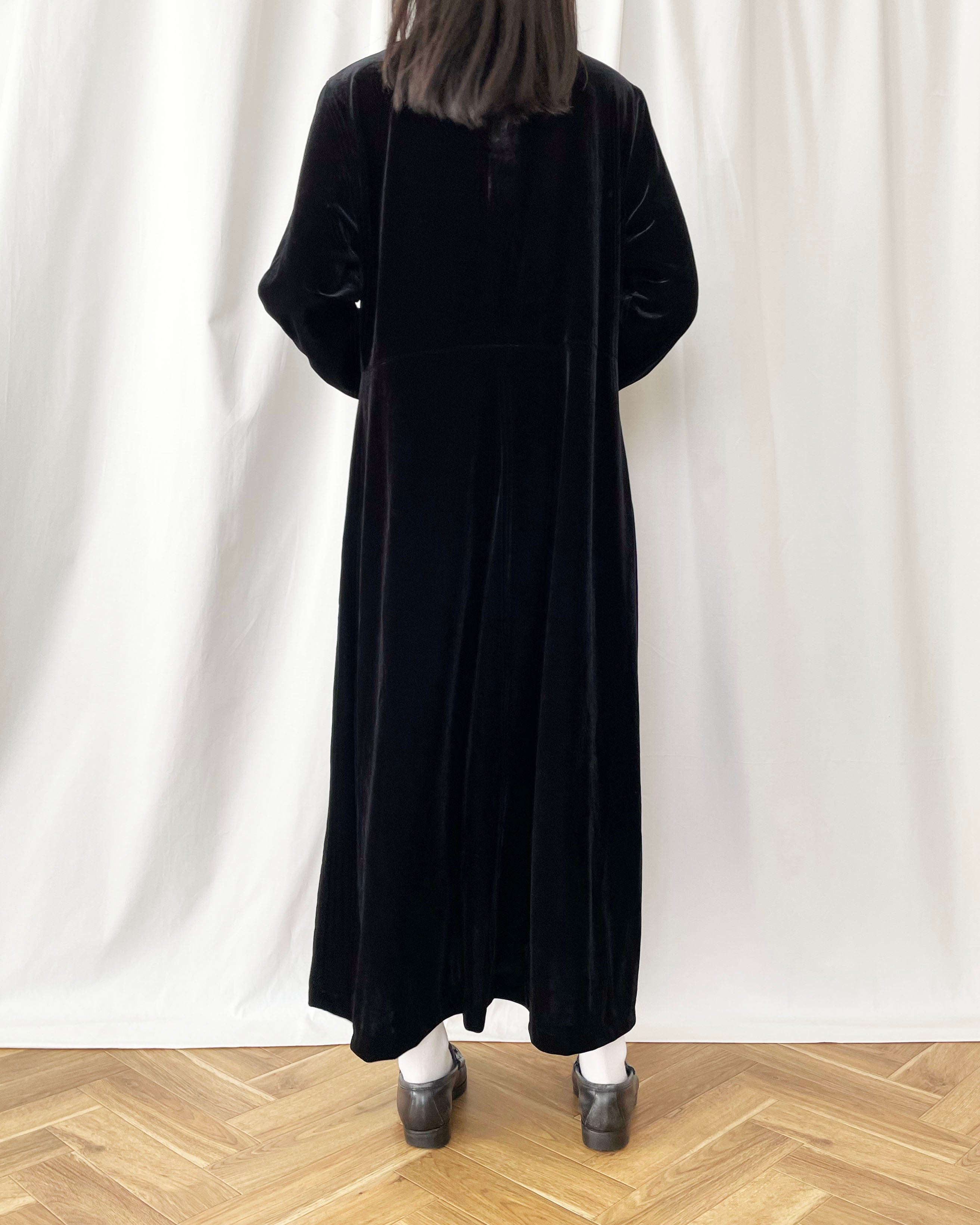 黒ベロア、モックネック+長袖のワンピース。