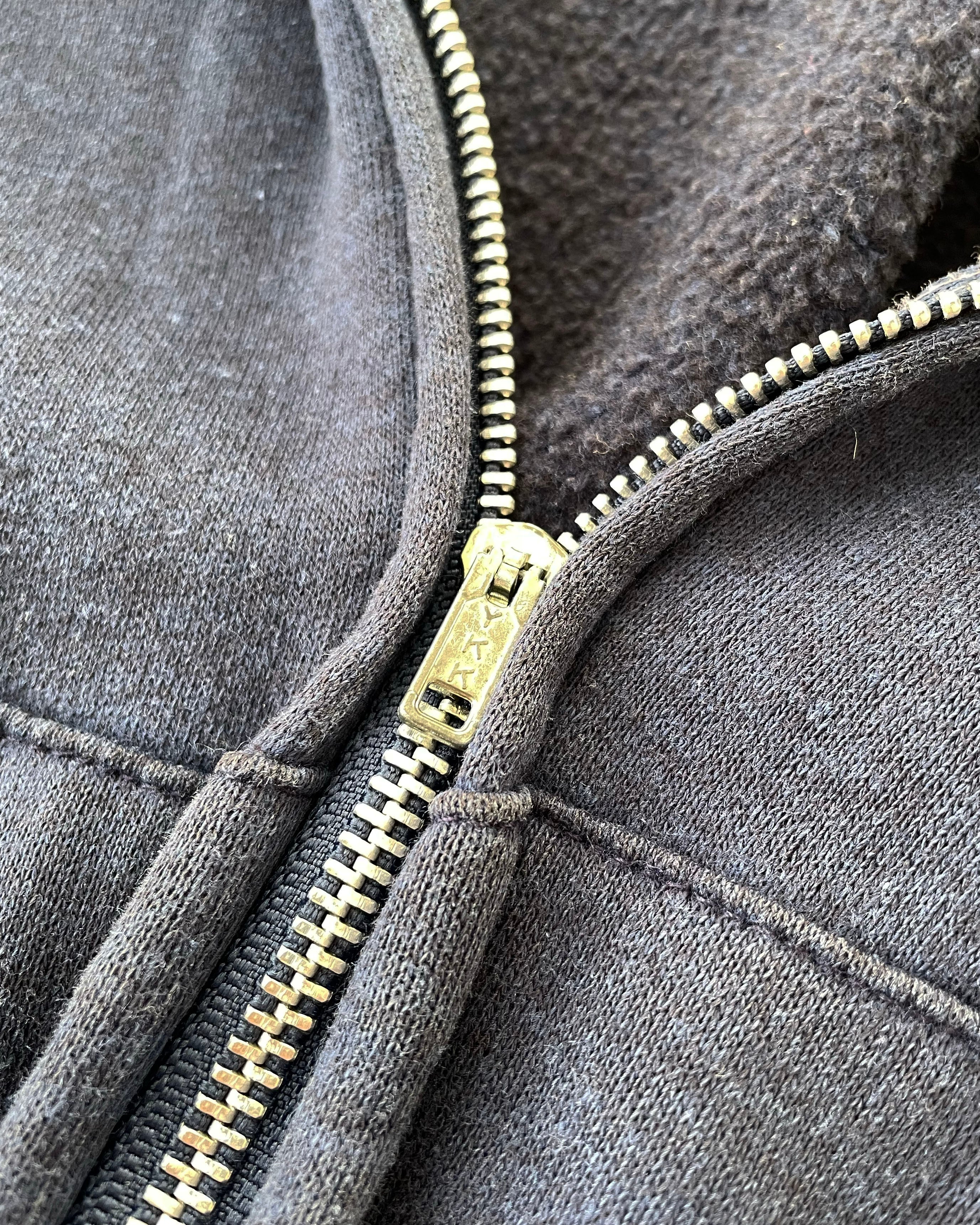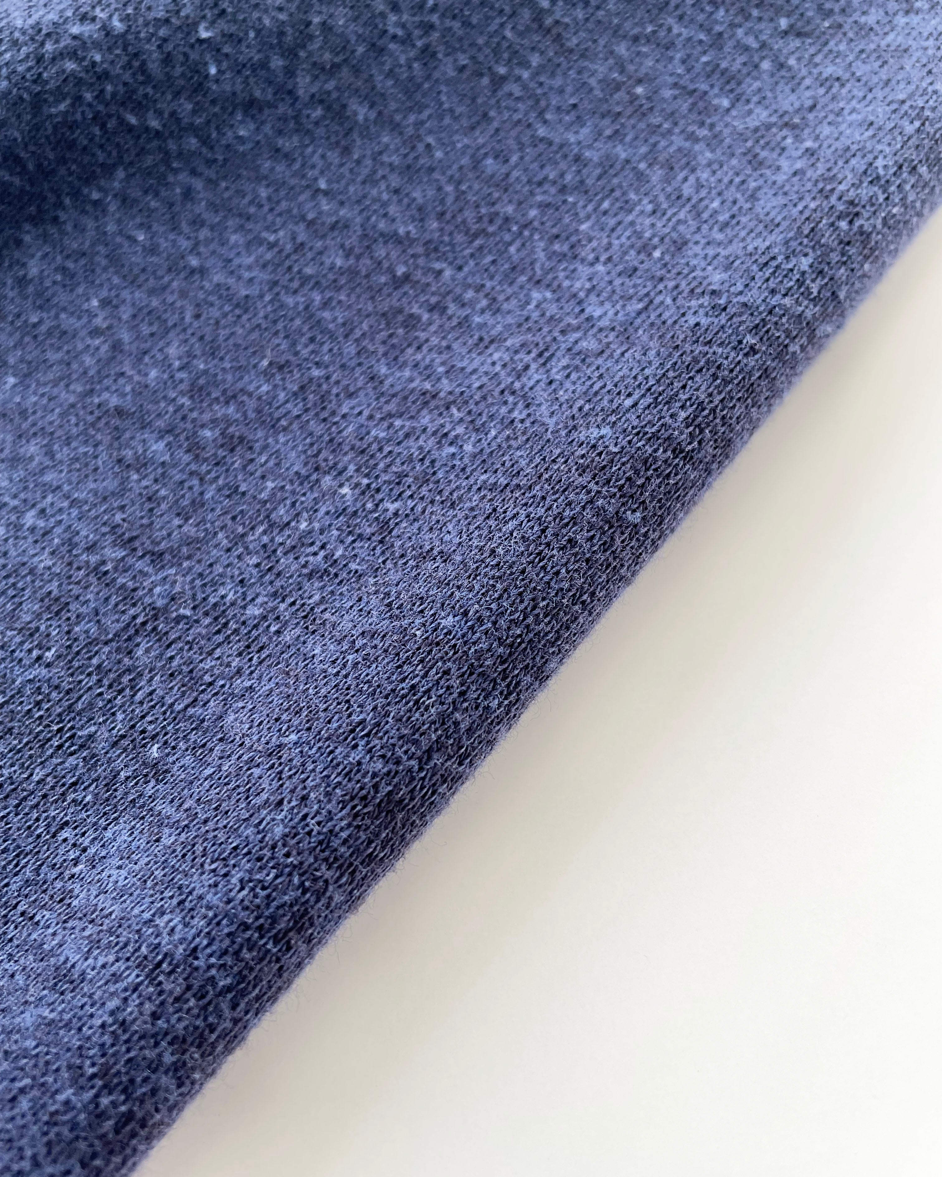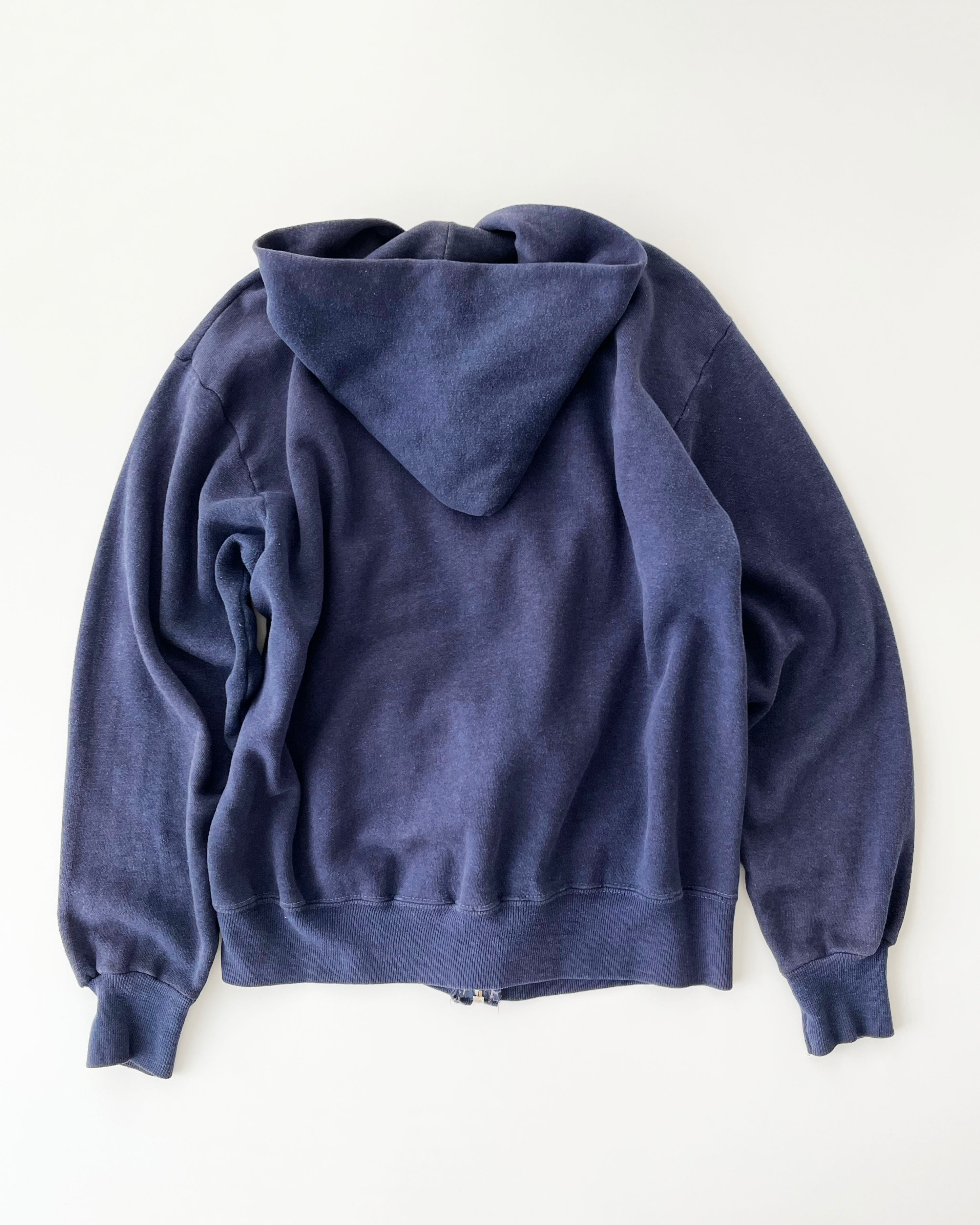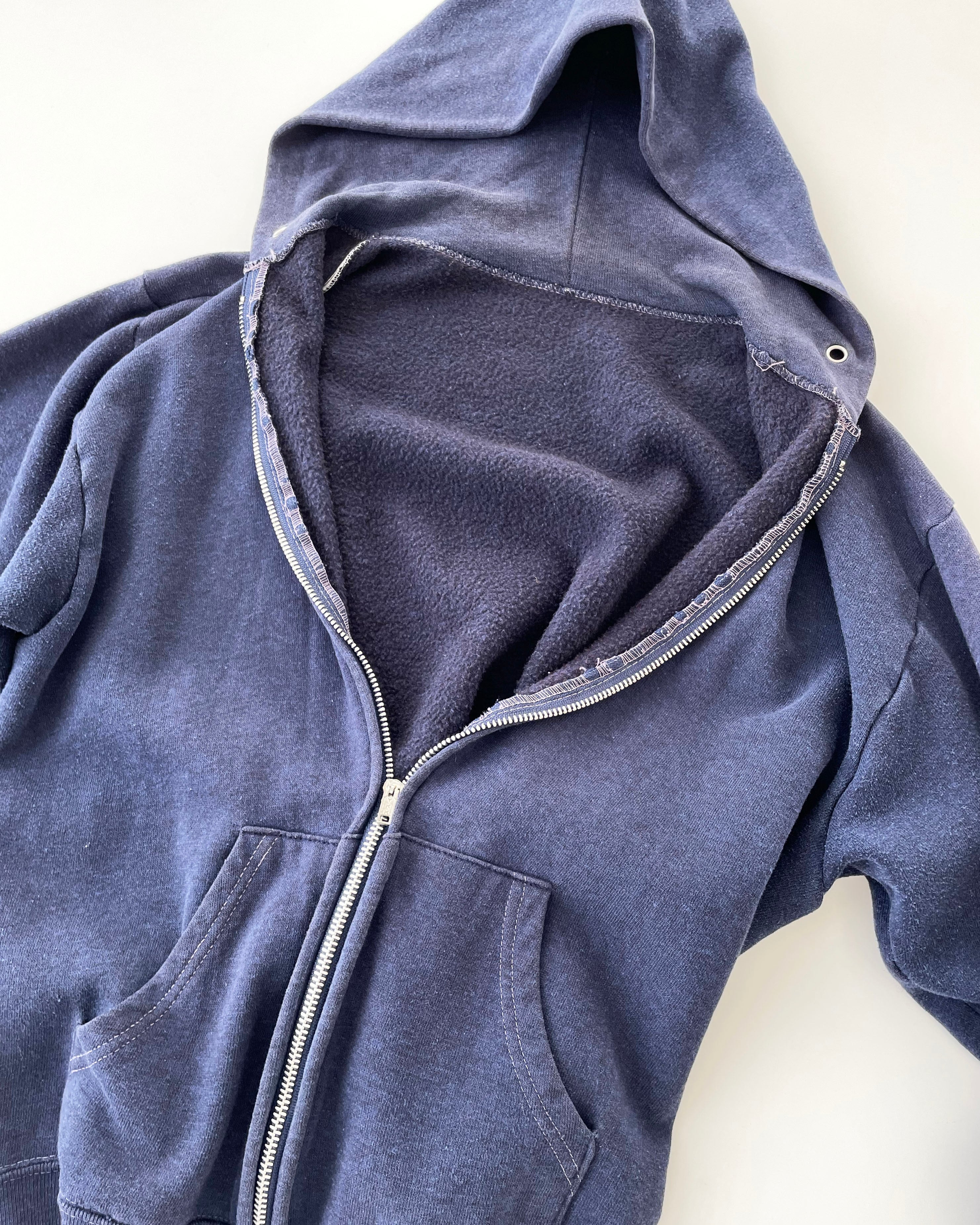 ネイビーカラー、シンプルな裏起毛ジップパーカ。