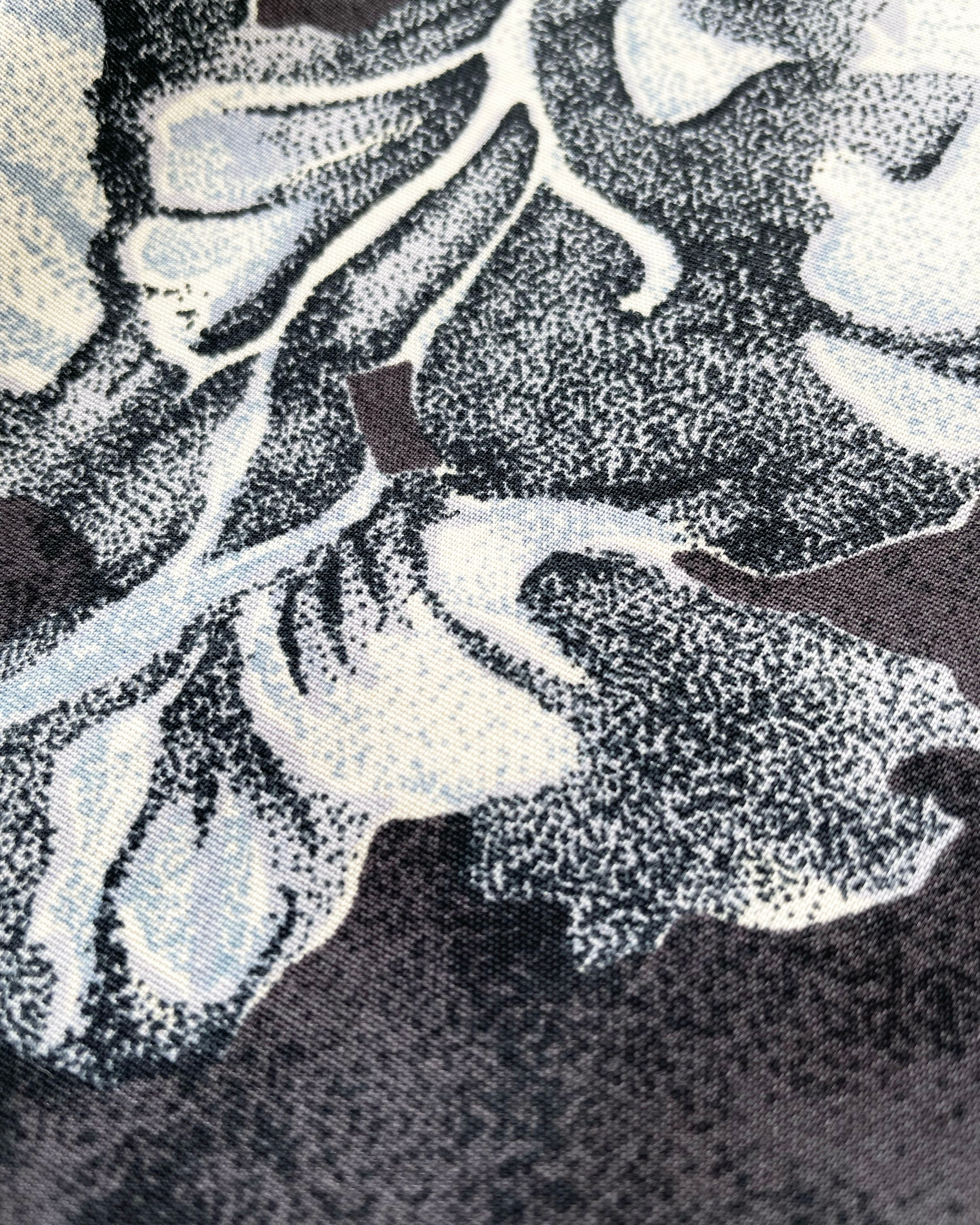 薄手の生地感ですがダークカラー&大柄なので透け感は気になりません◎