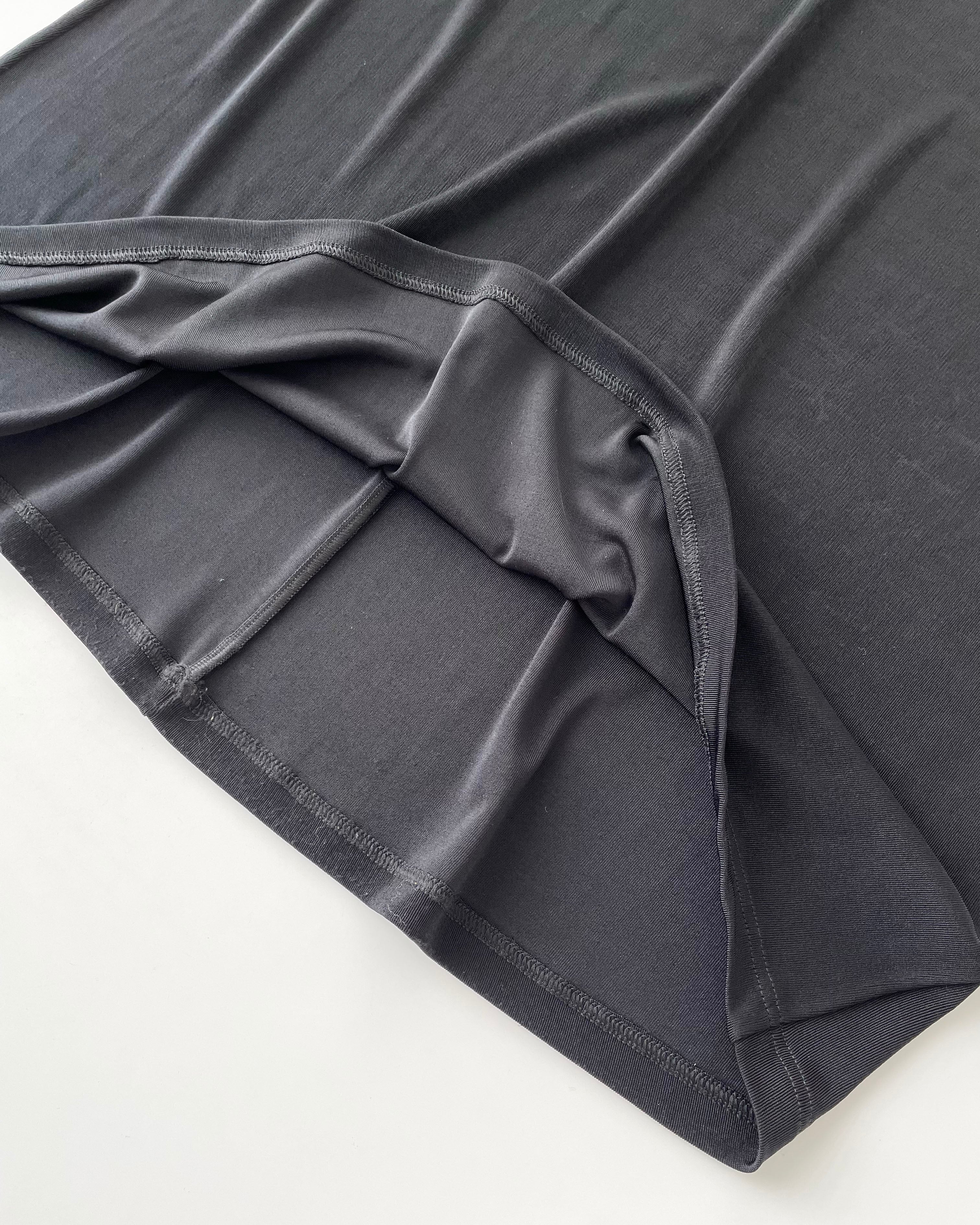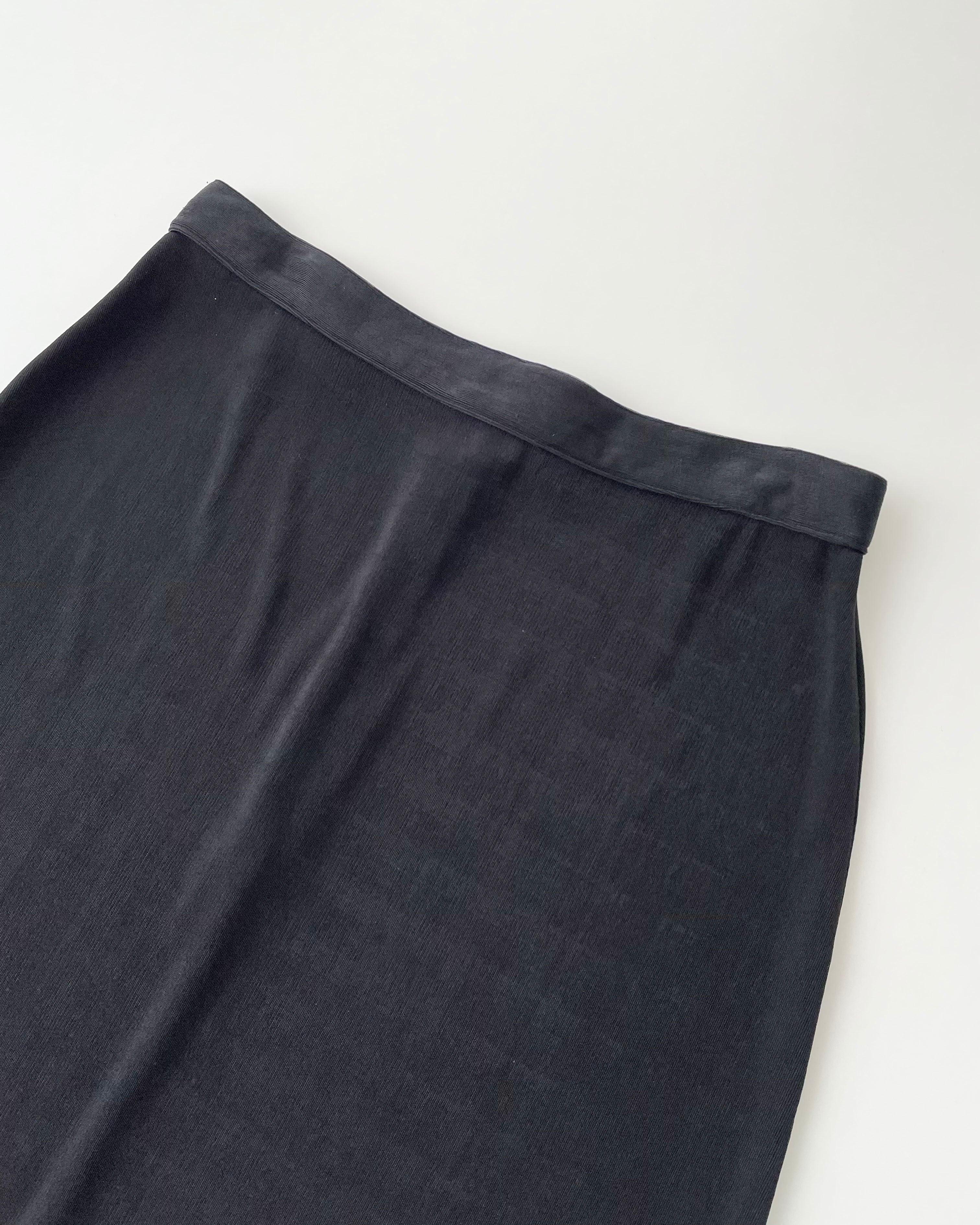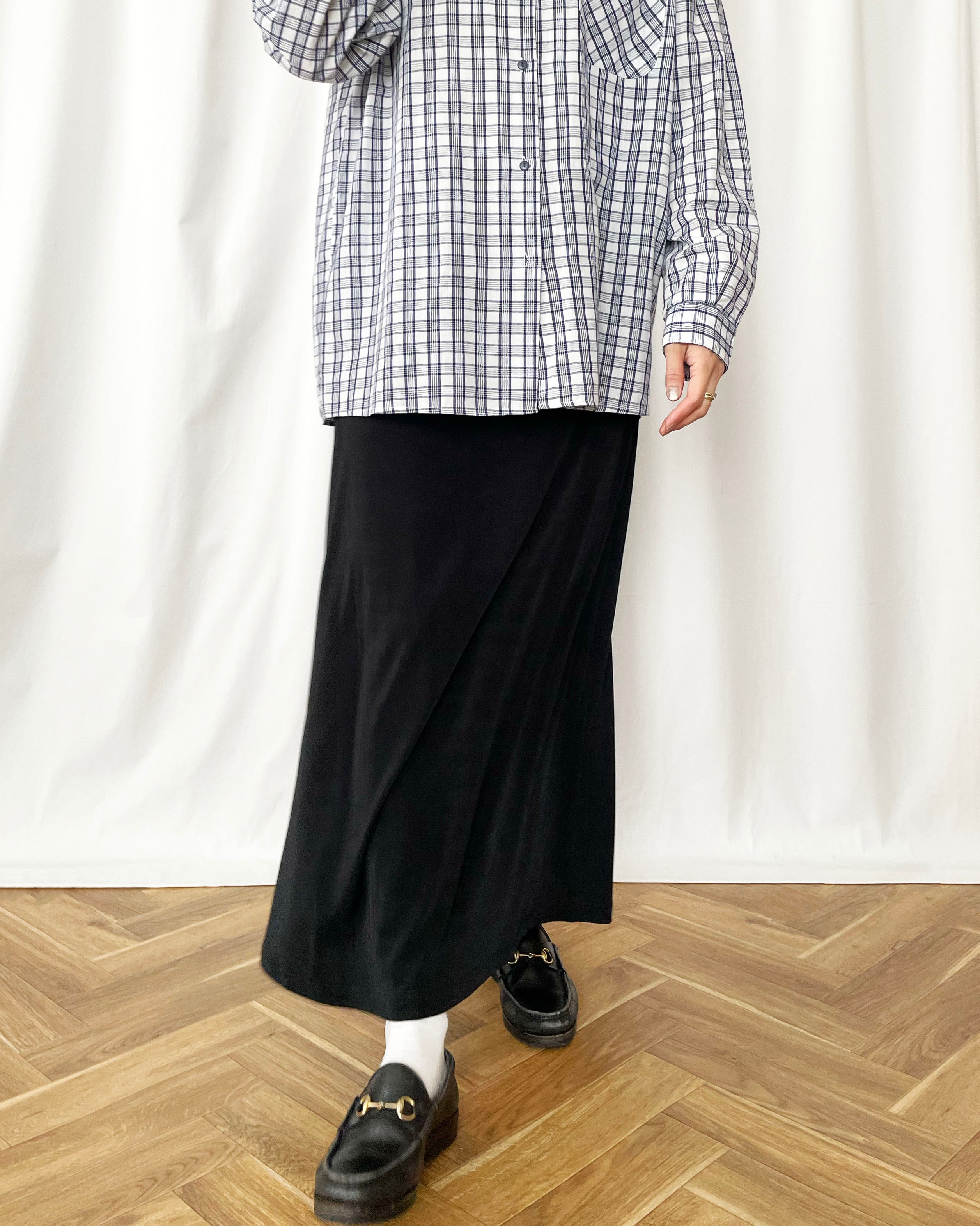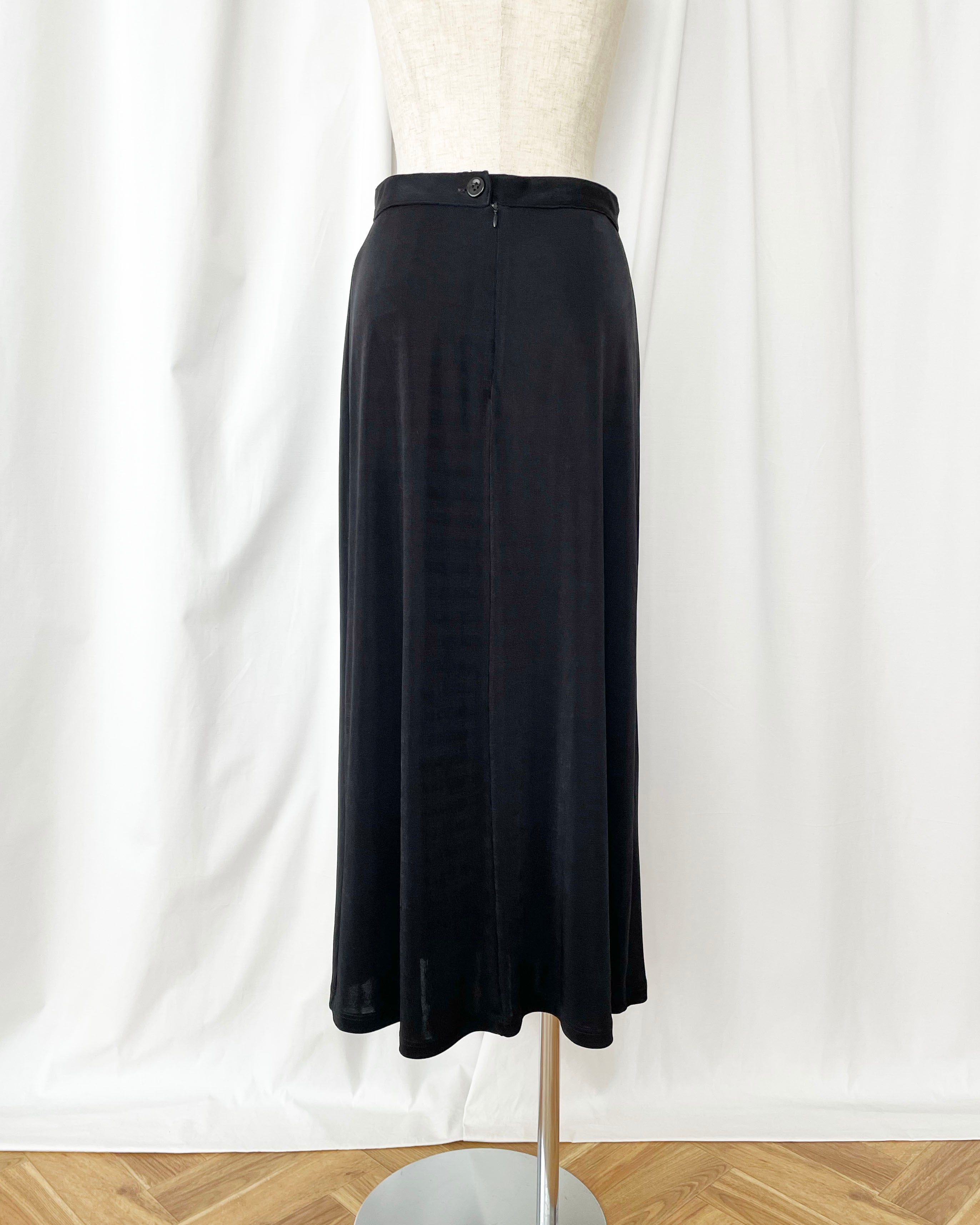 黒のテロっとした素材、シンプルなスカート。
