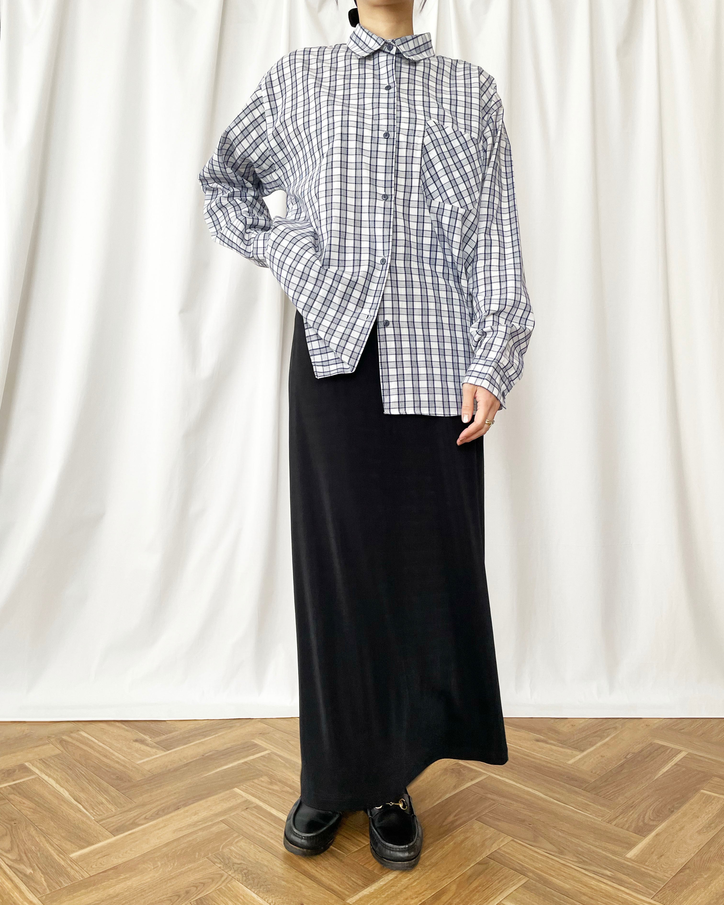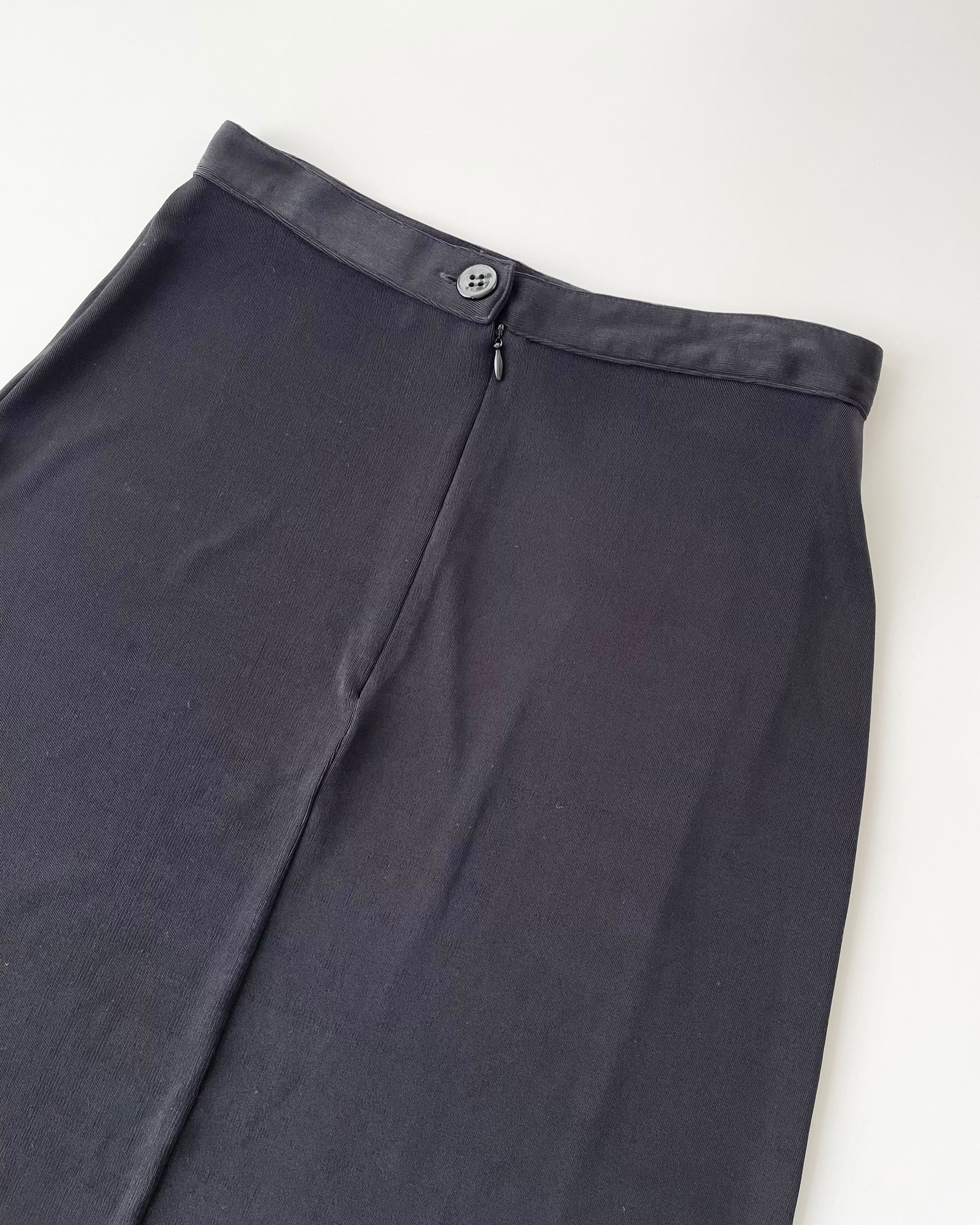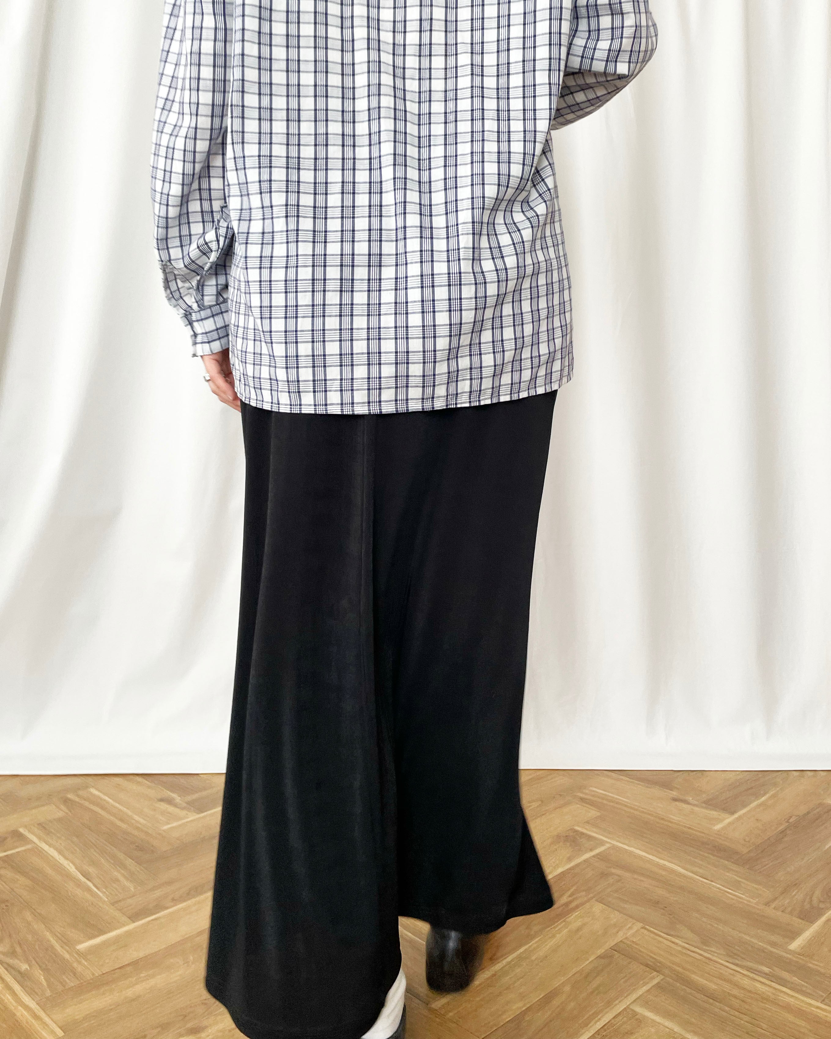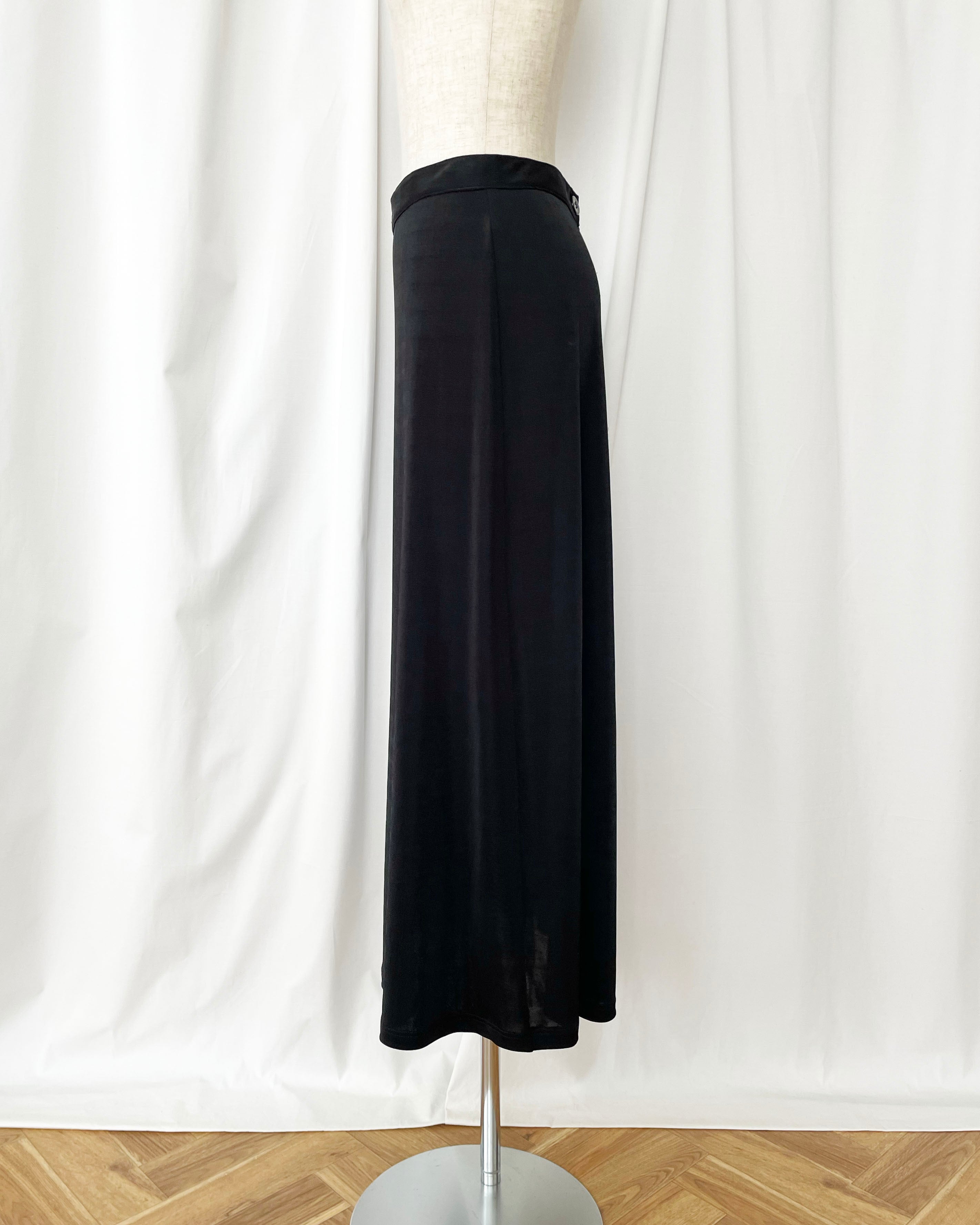 黒のテロっとした素材、シンプルなスカート。