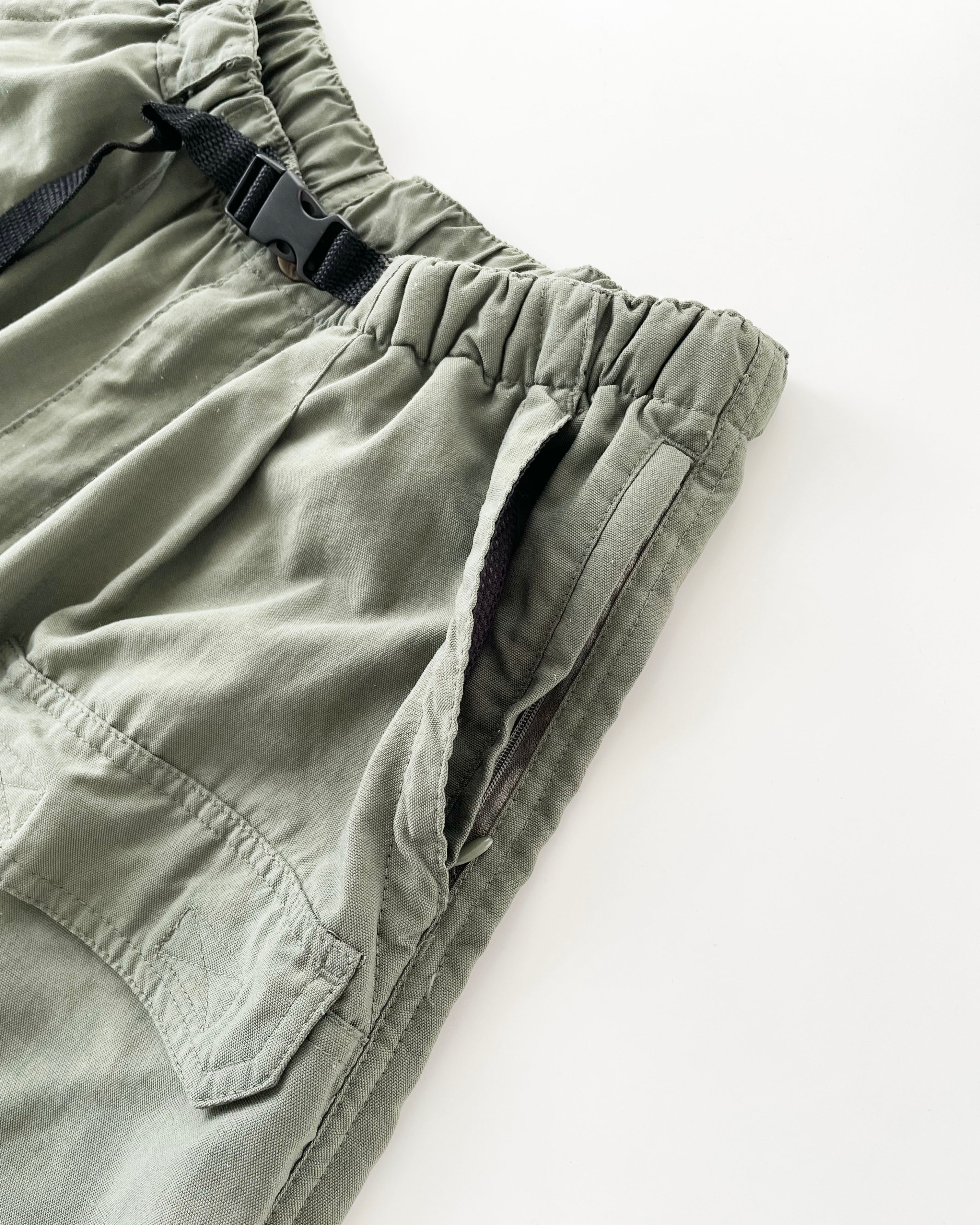 カーキカラー、ショーツにもなるコンバーチブルカーゴ。