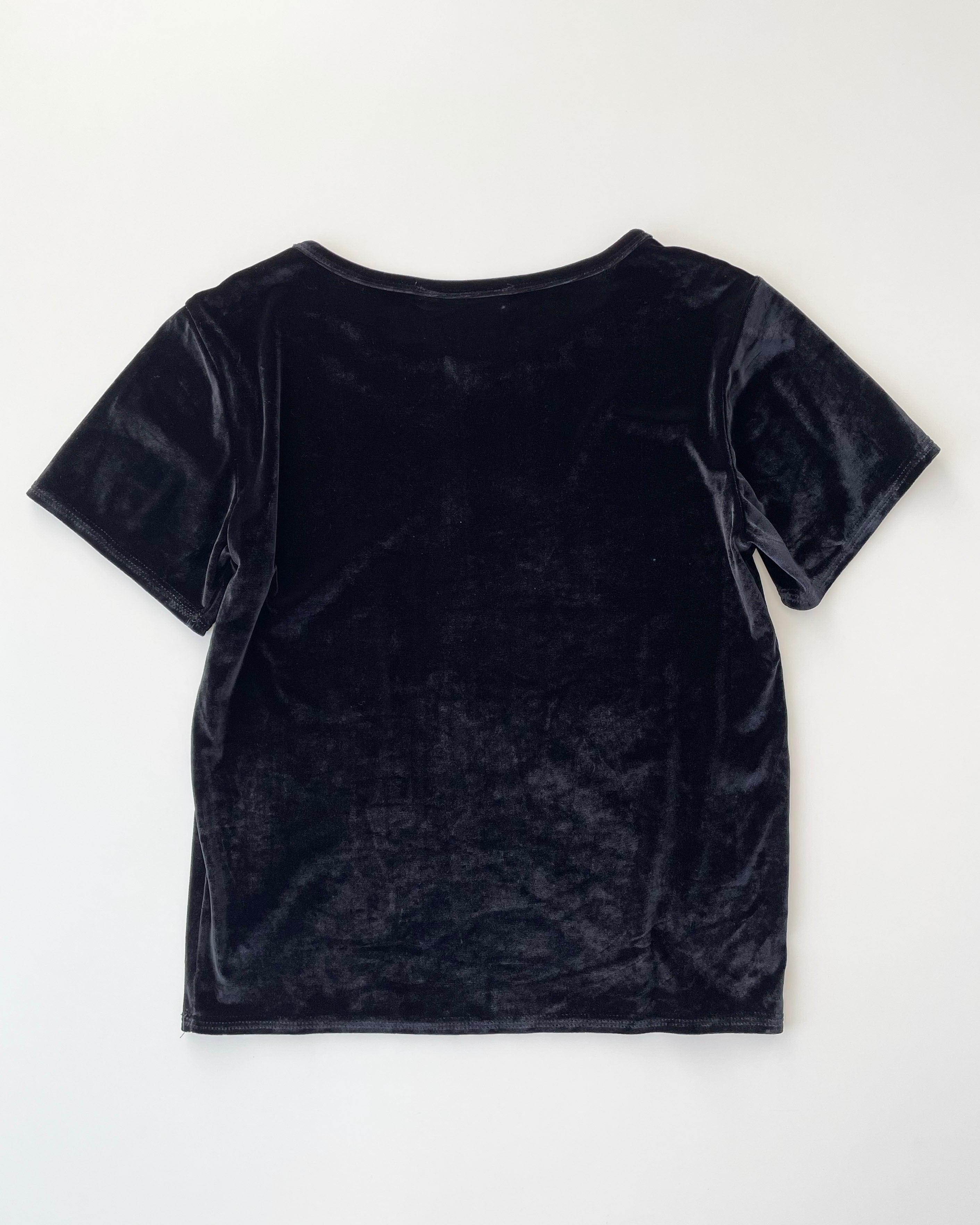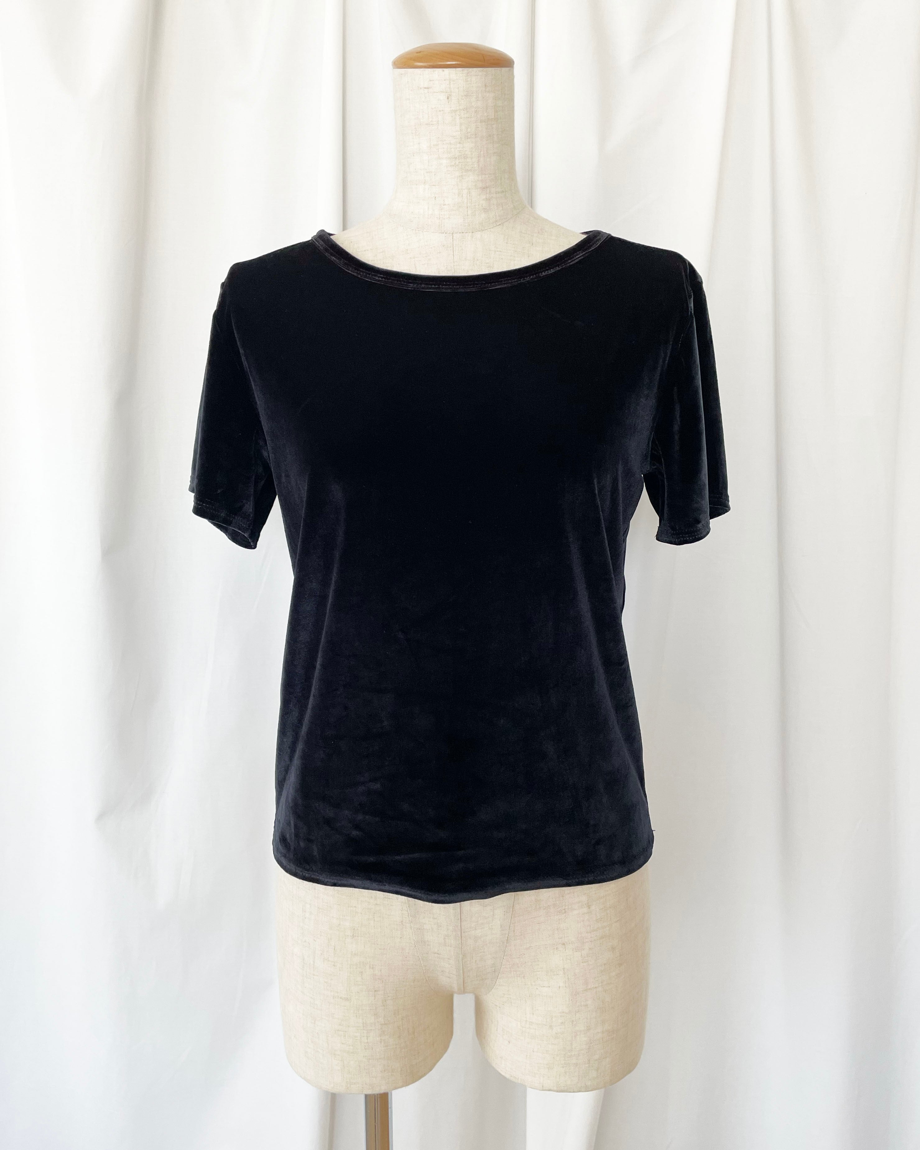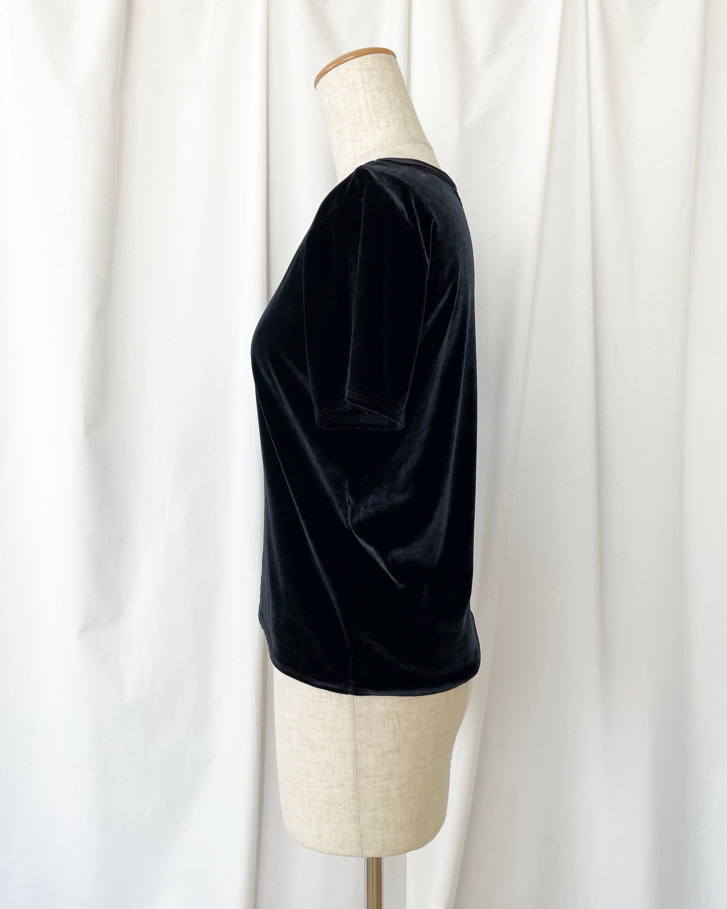 黒ベロア、シンプルなTシャツ。