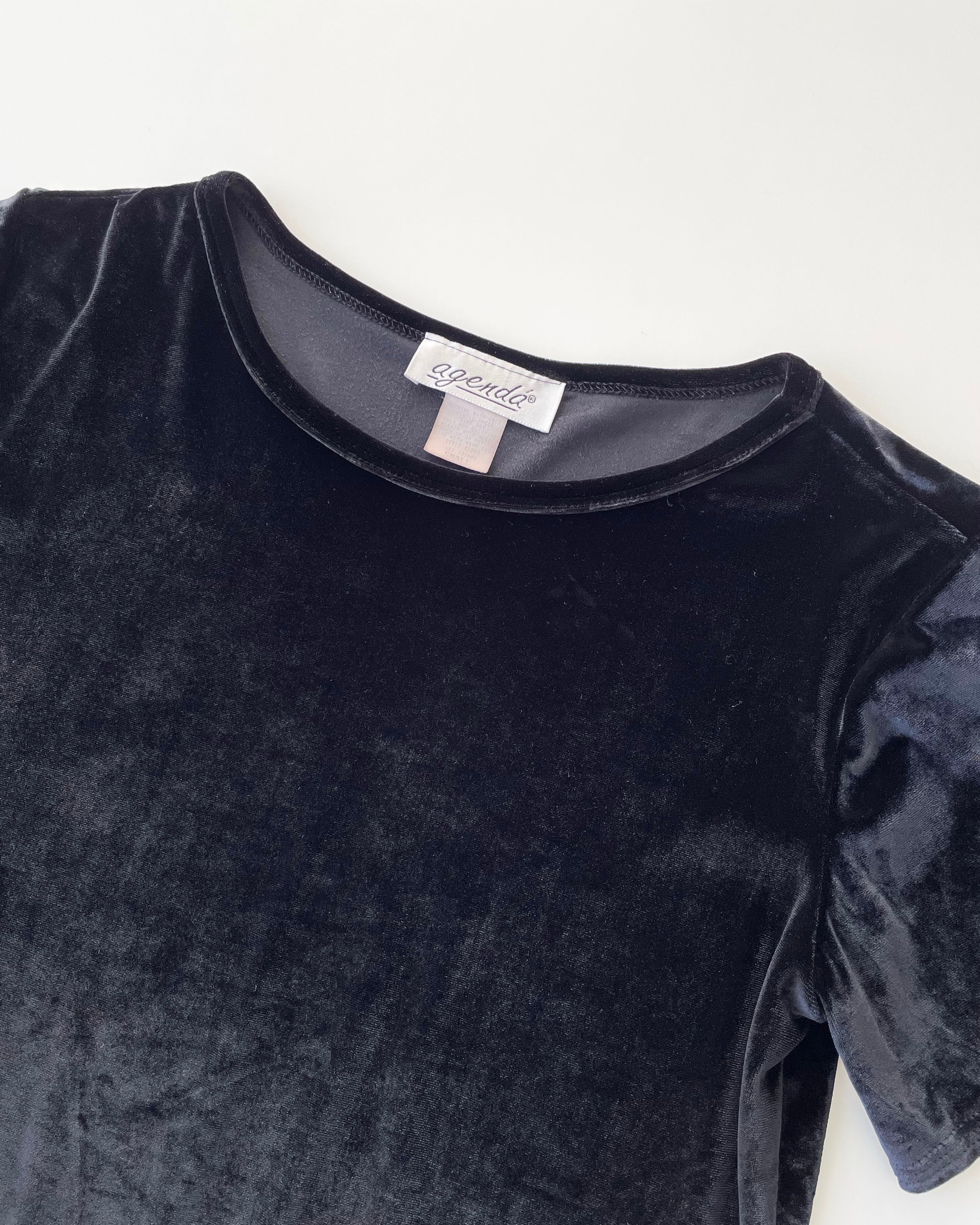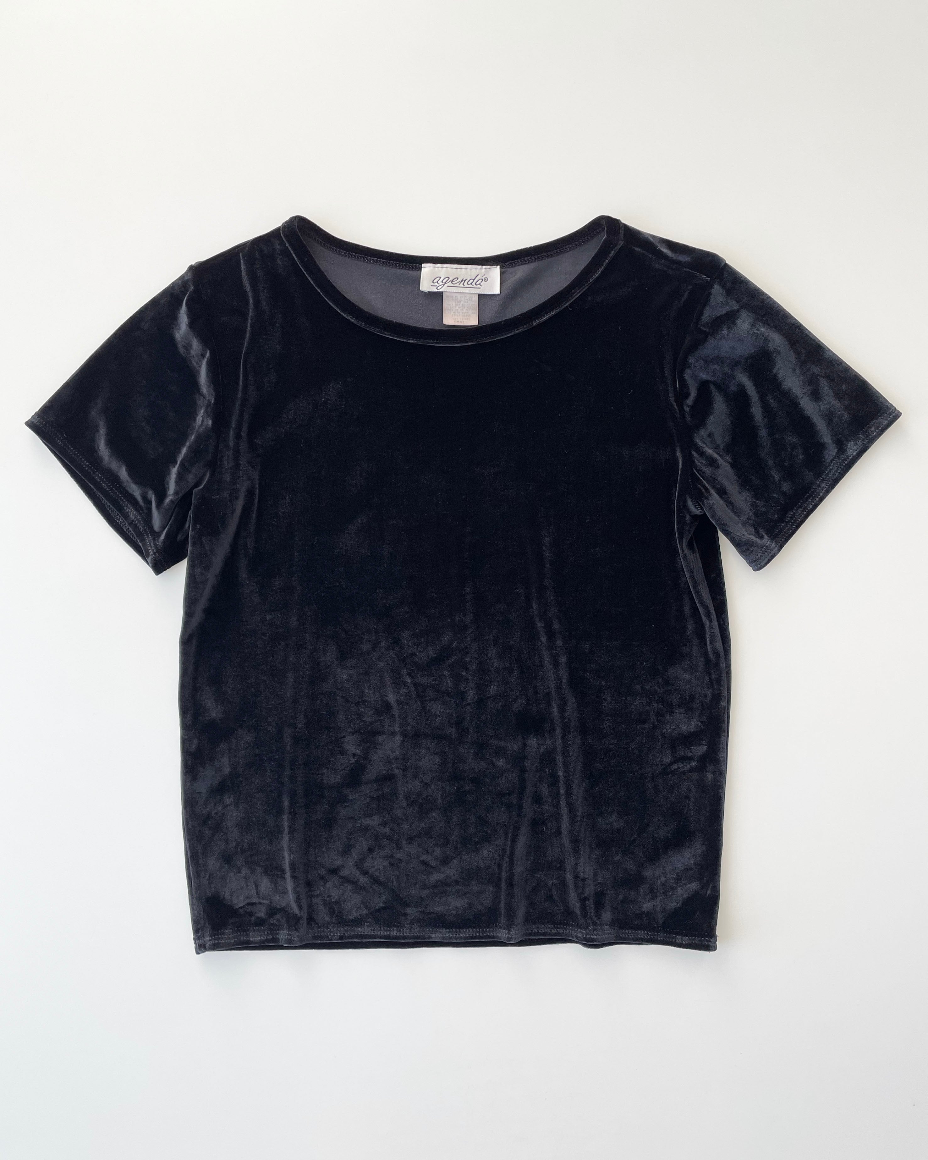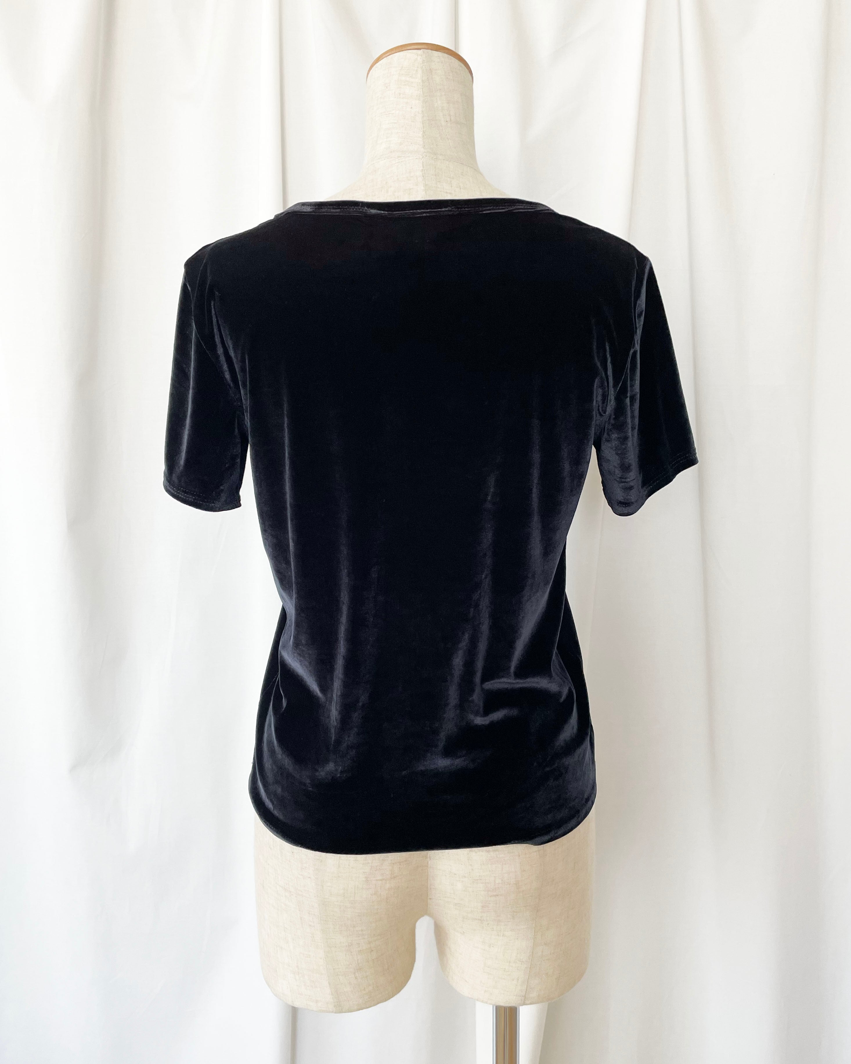 黒ベロア、シンプルなTシャツ。