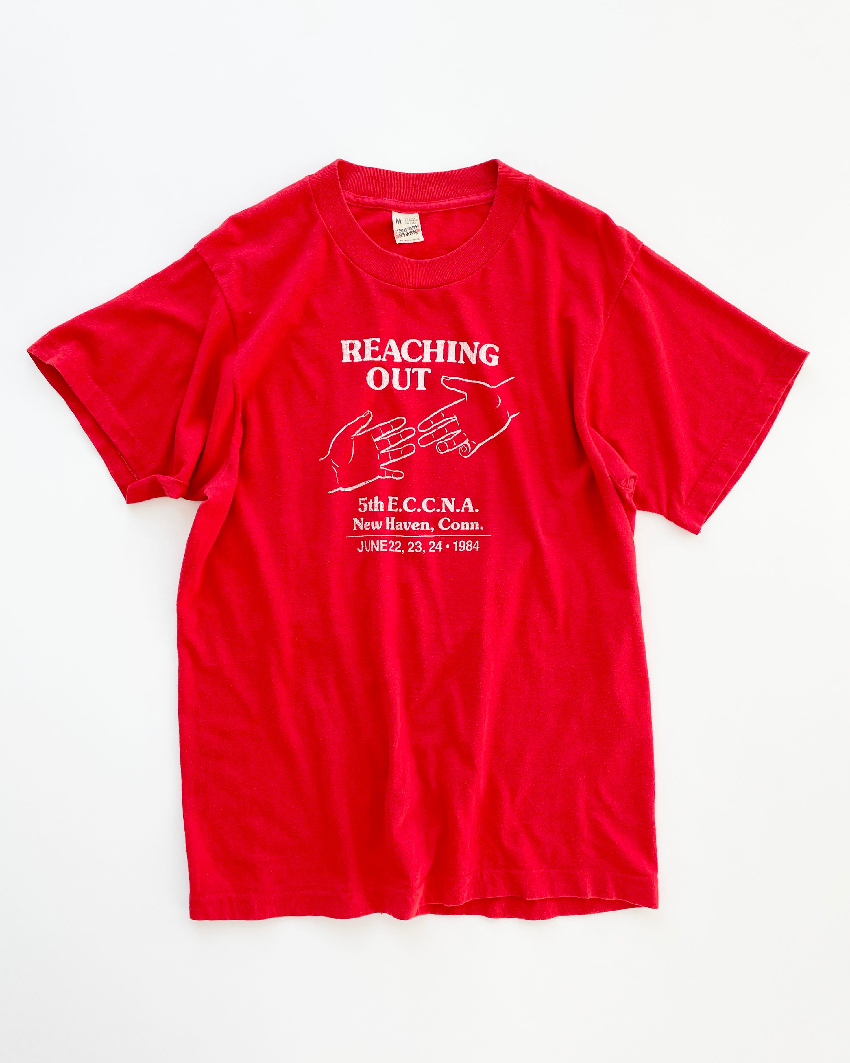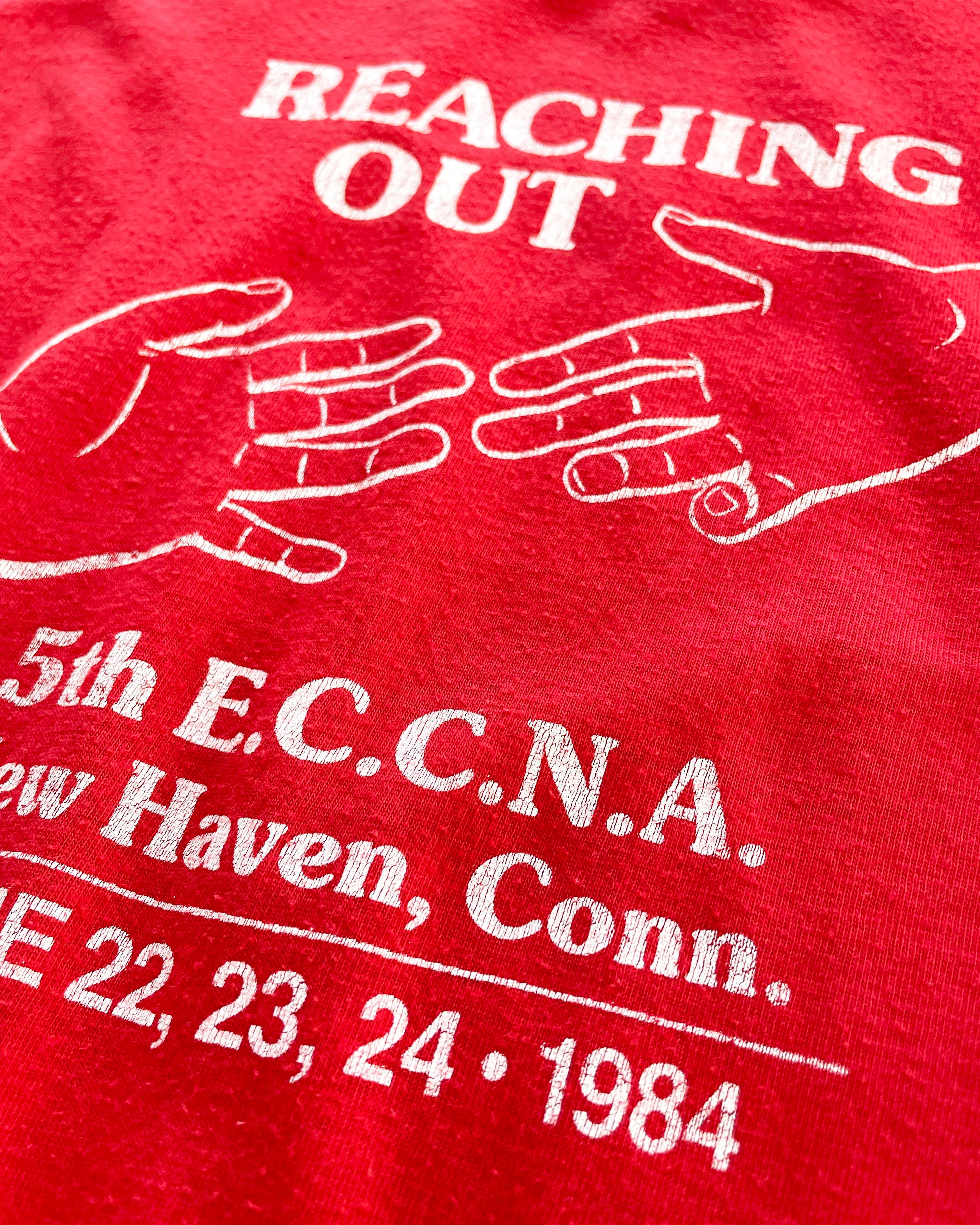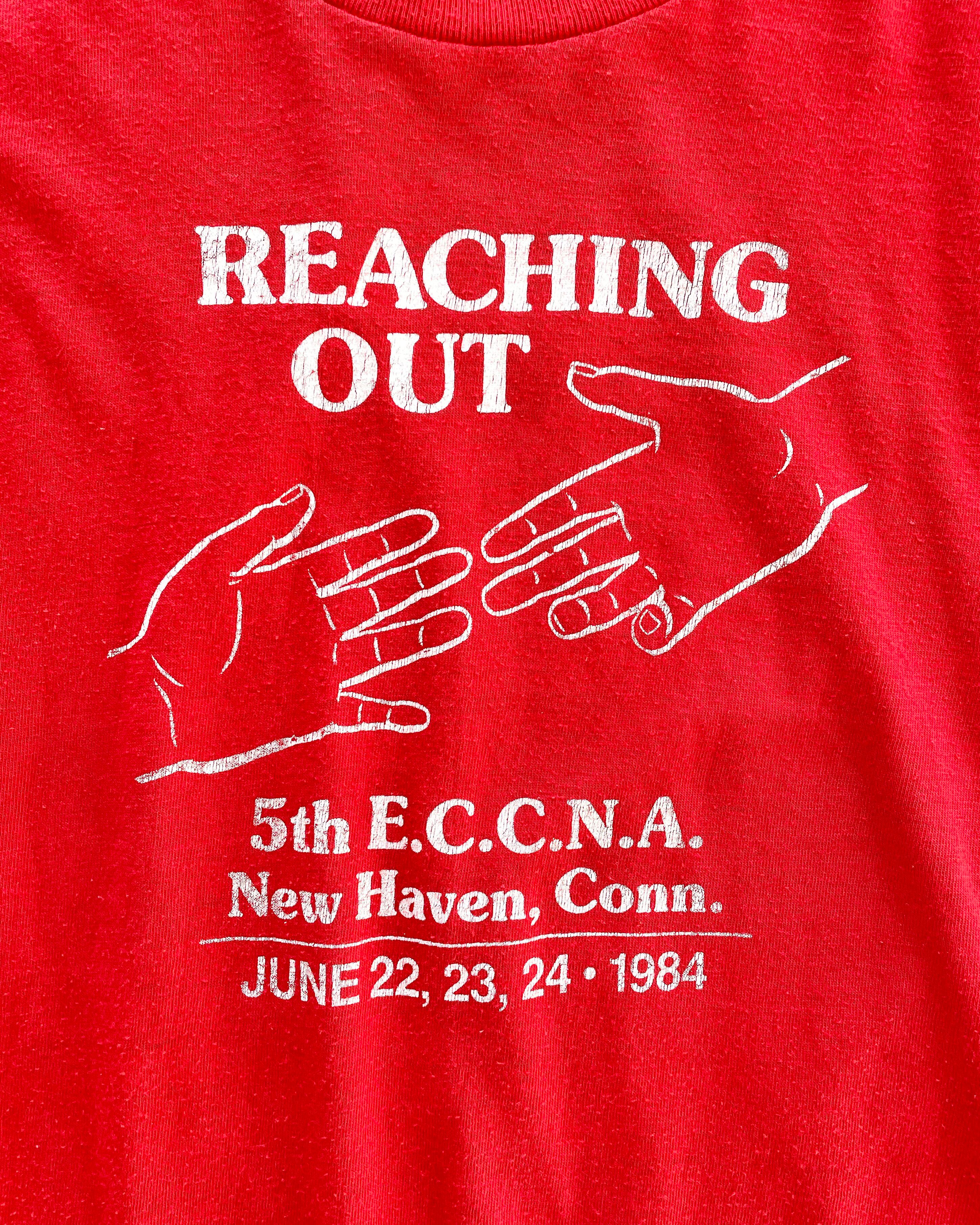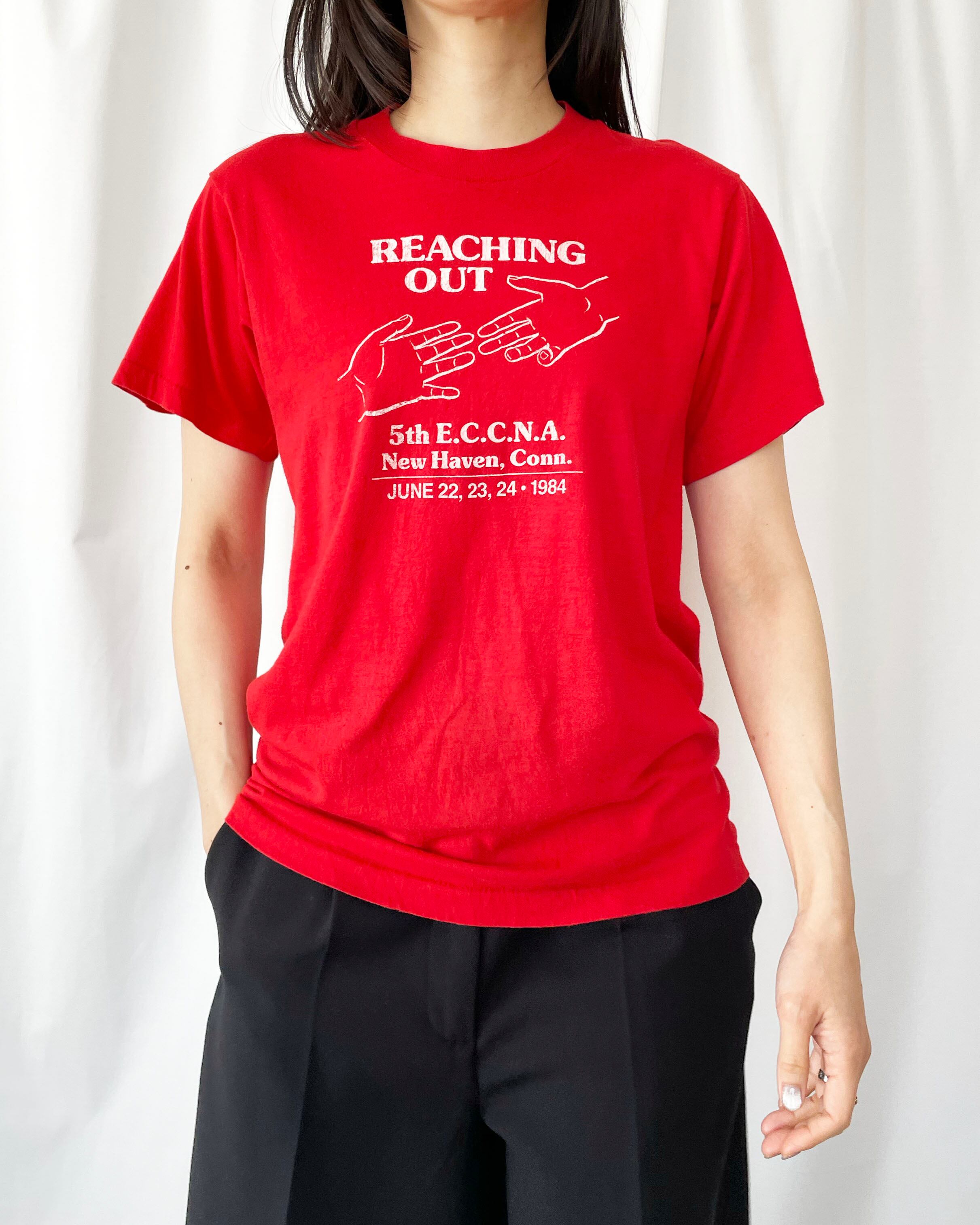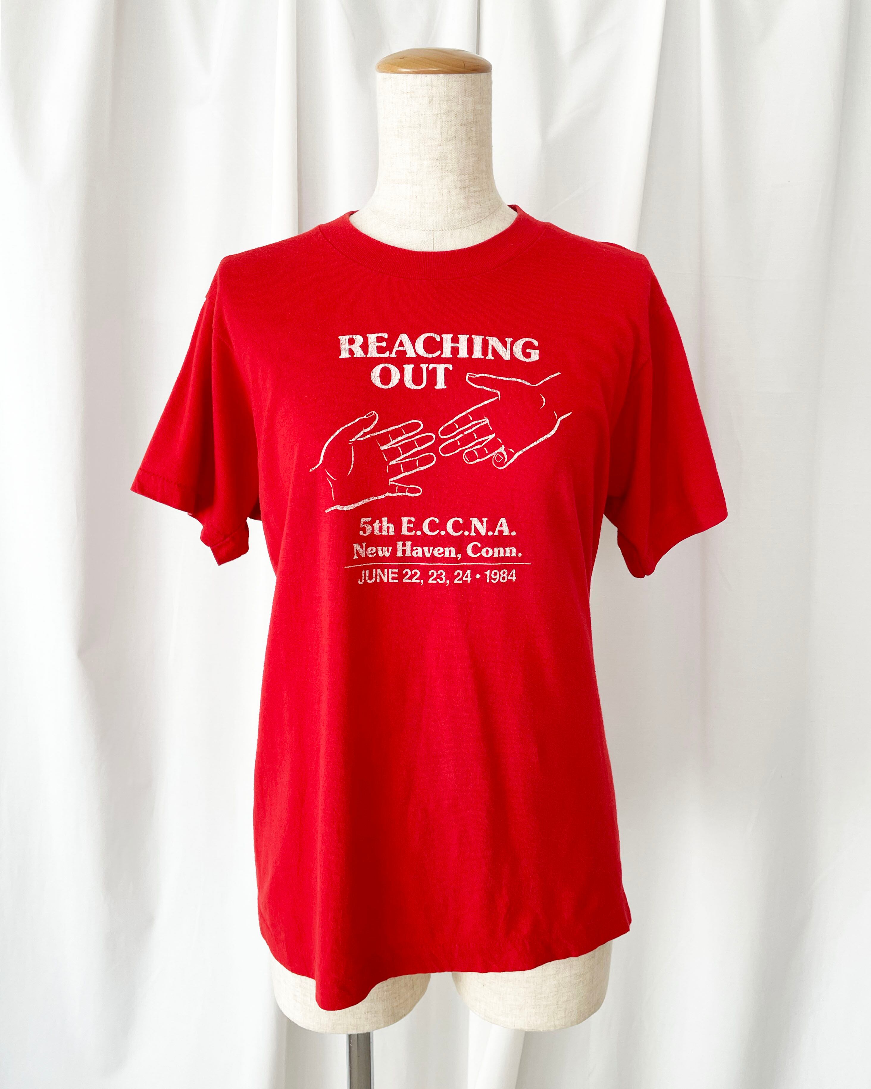 80s USA "REACHING OUT" printed T-shirt