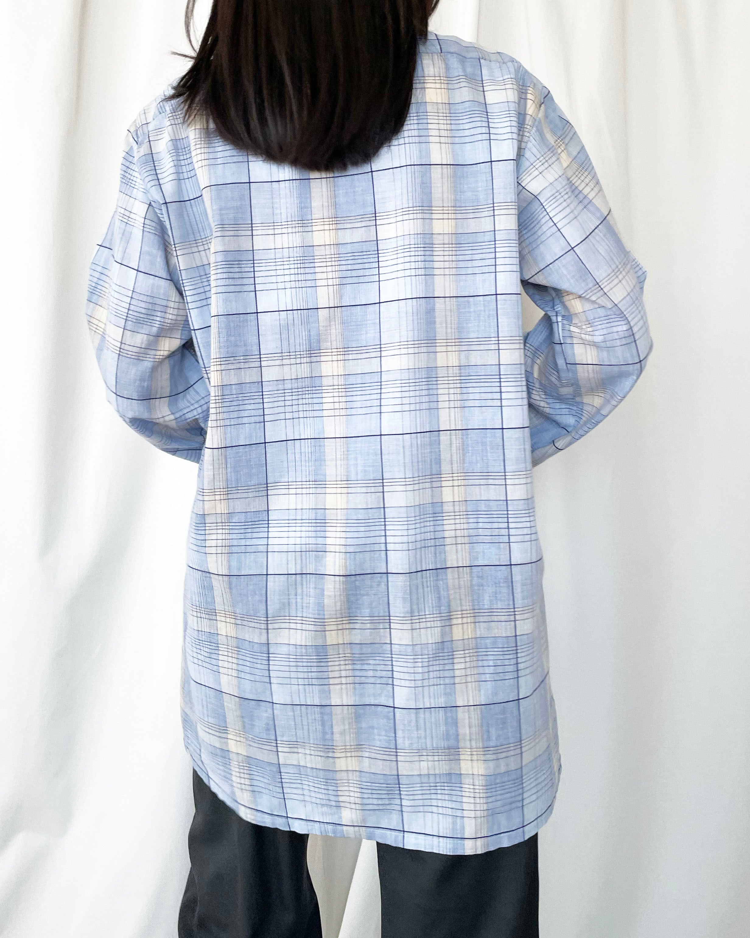 程よい丸襟、薄手でガーゼやリネンのような風合い。