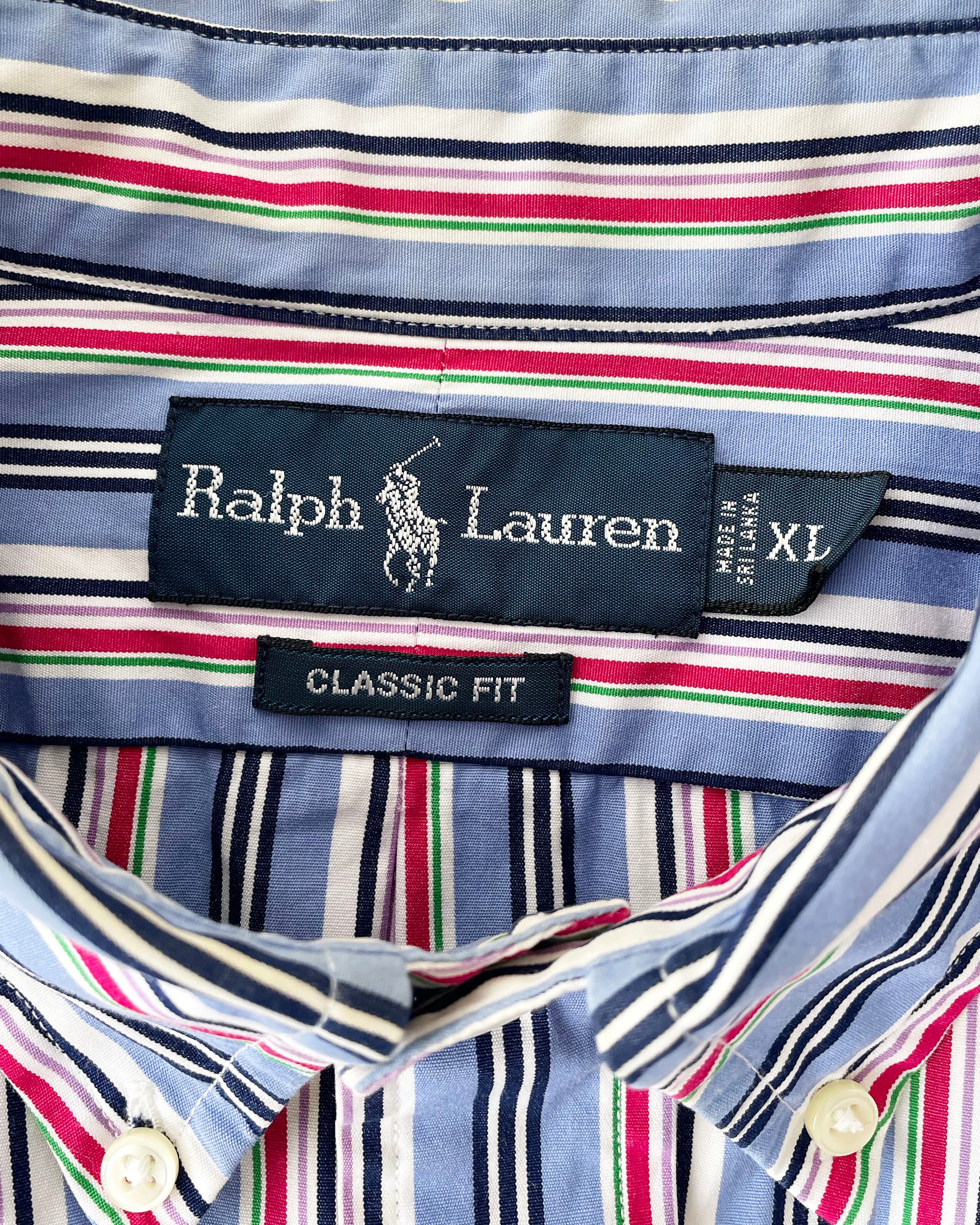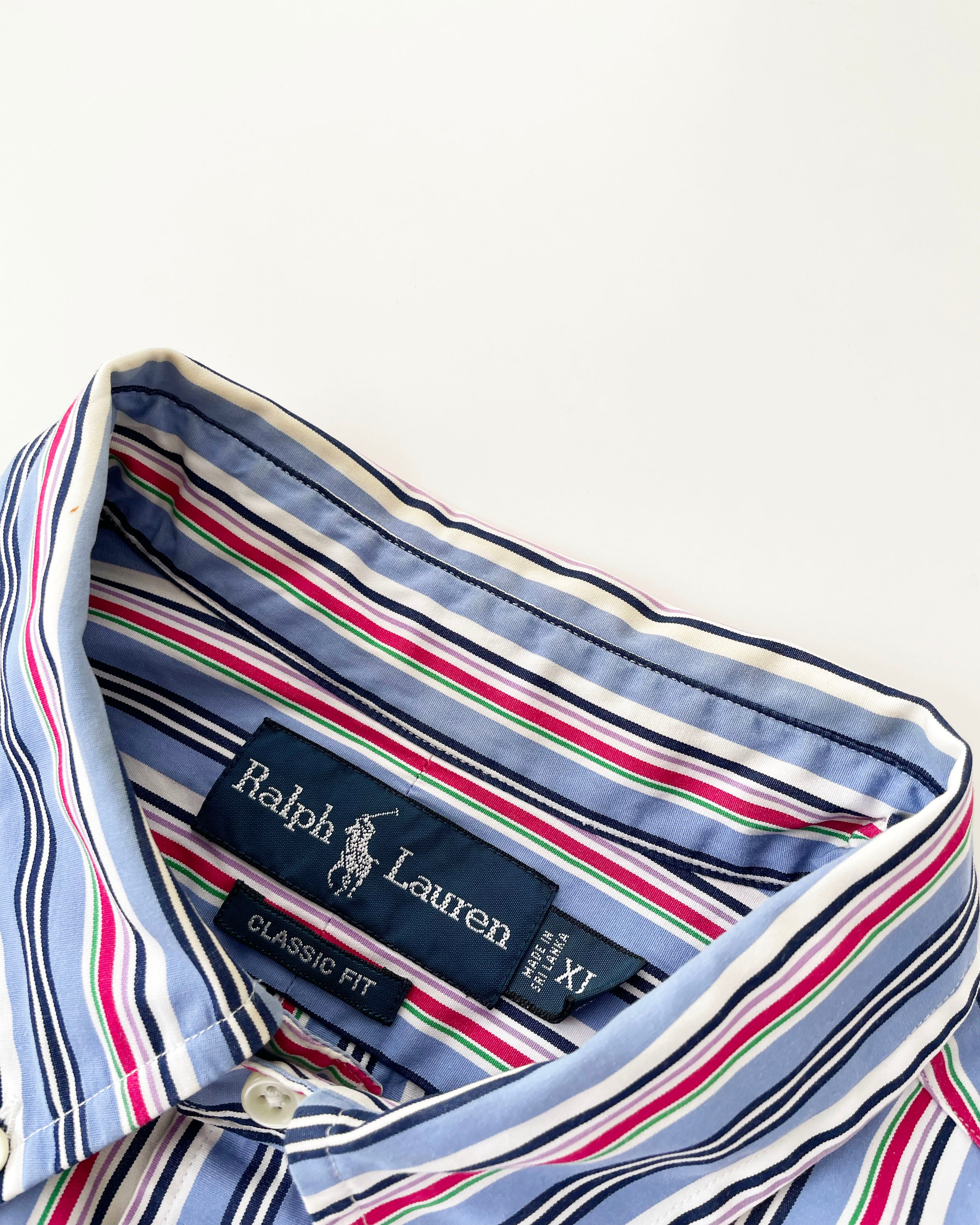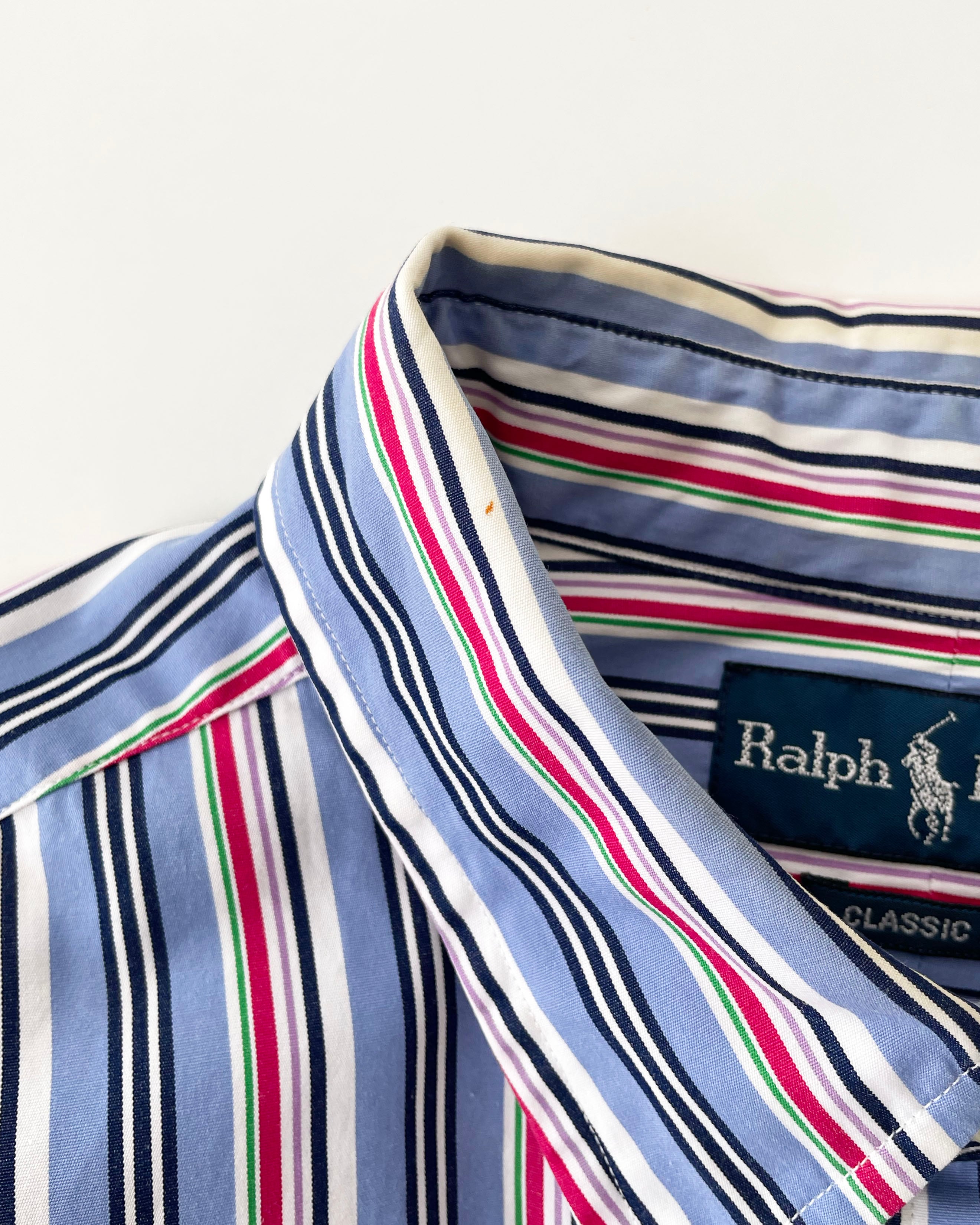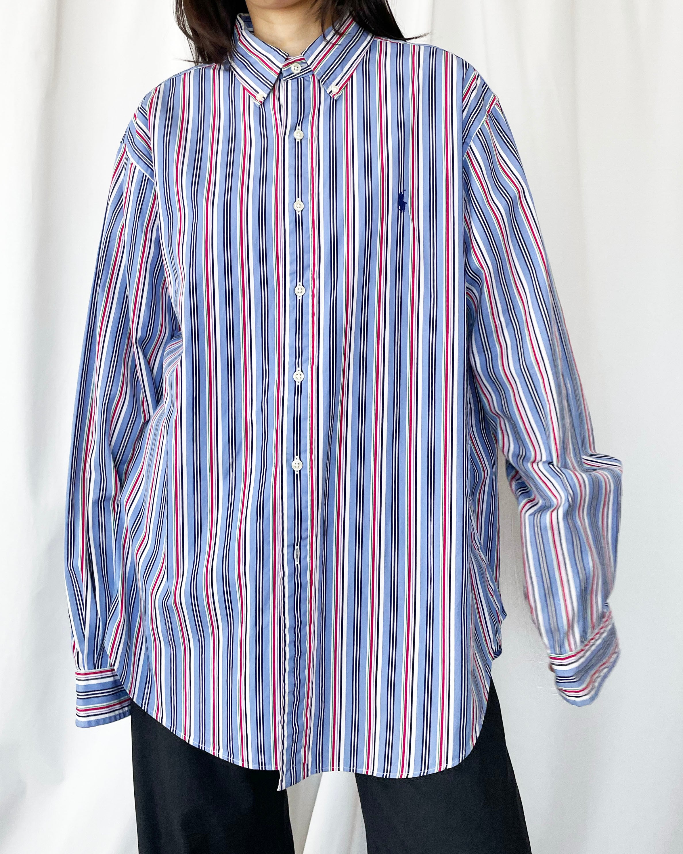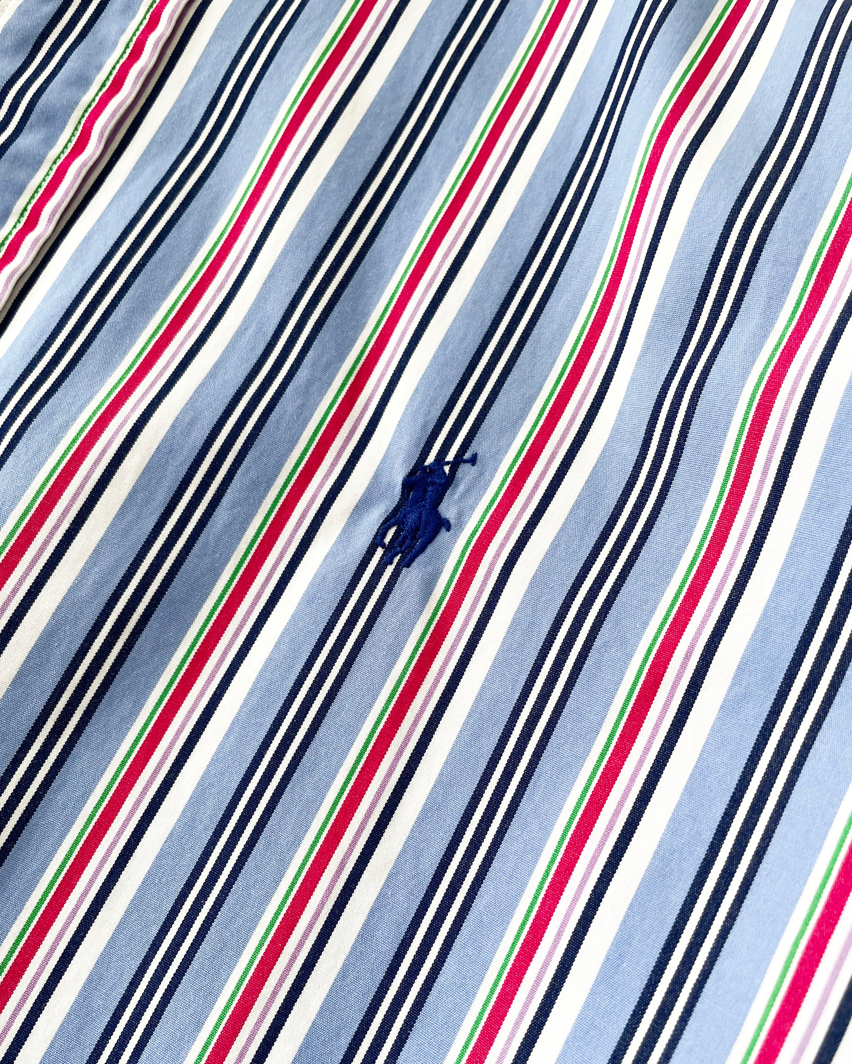 水色、グリーン、パープル、ネイビーetcのカラフルストライプ。