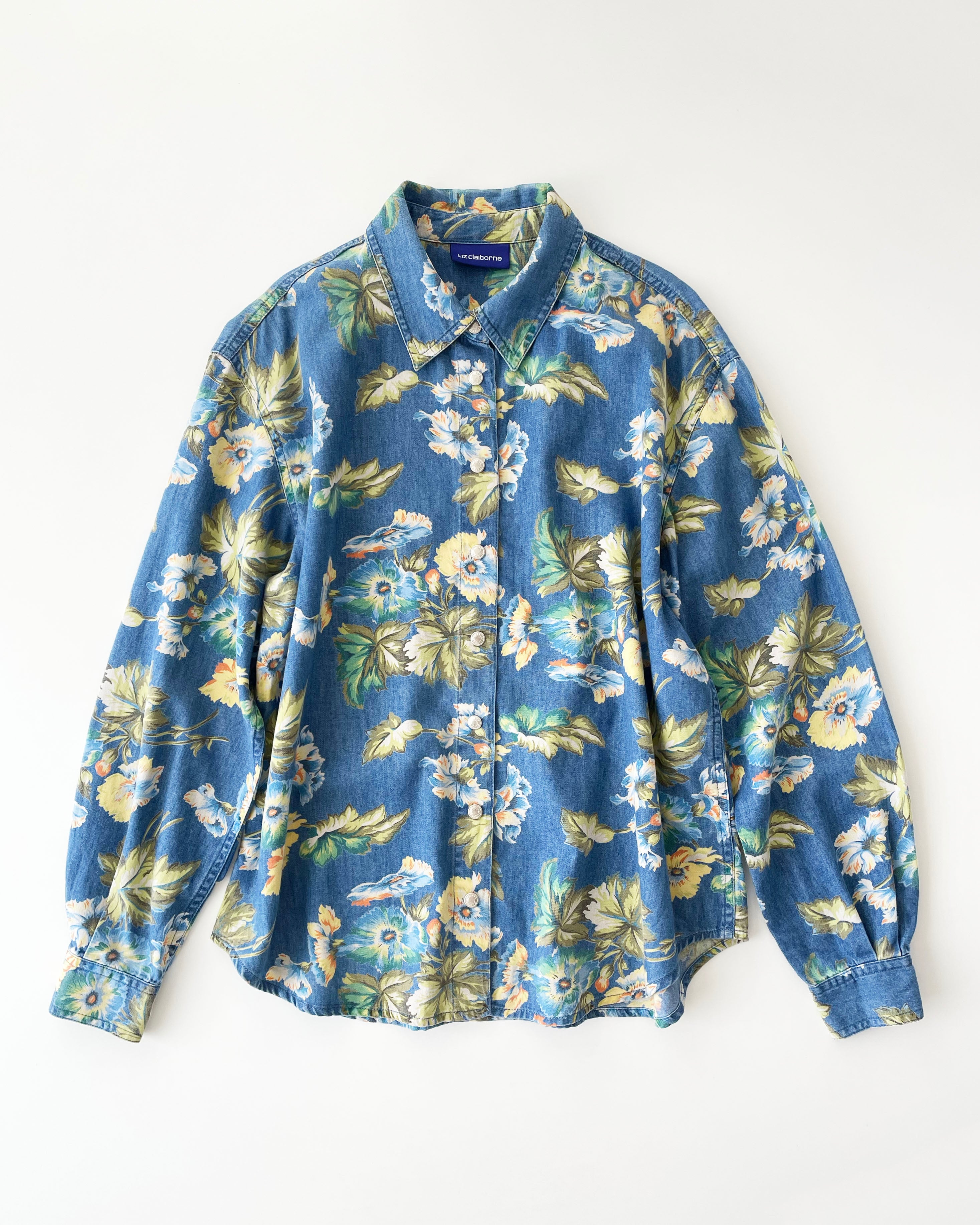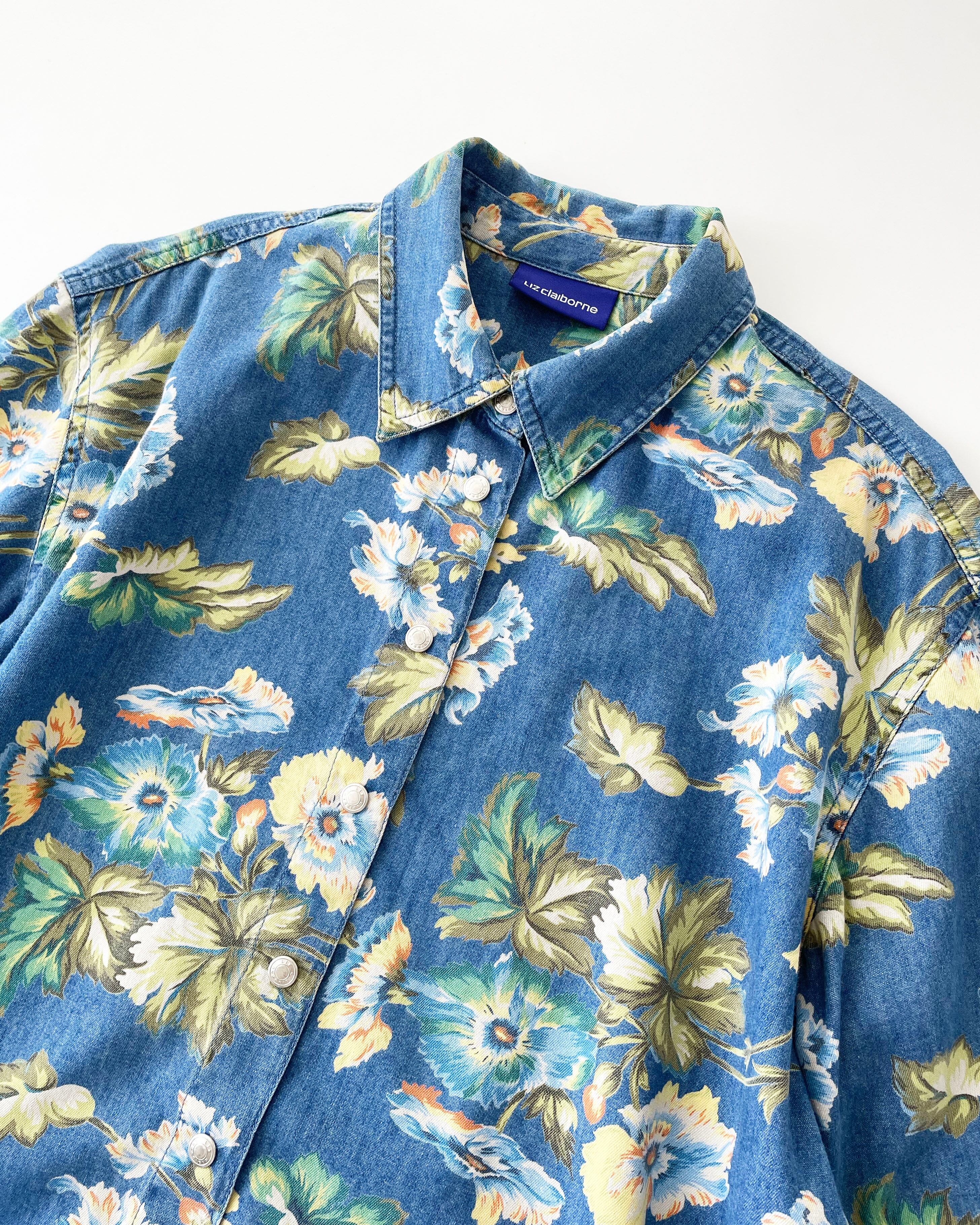 90s Liz Claiborne botanical denim shirt