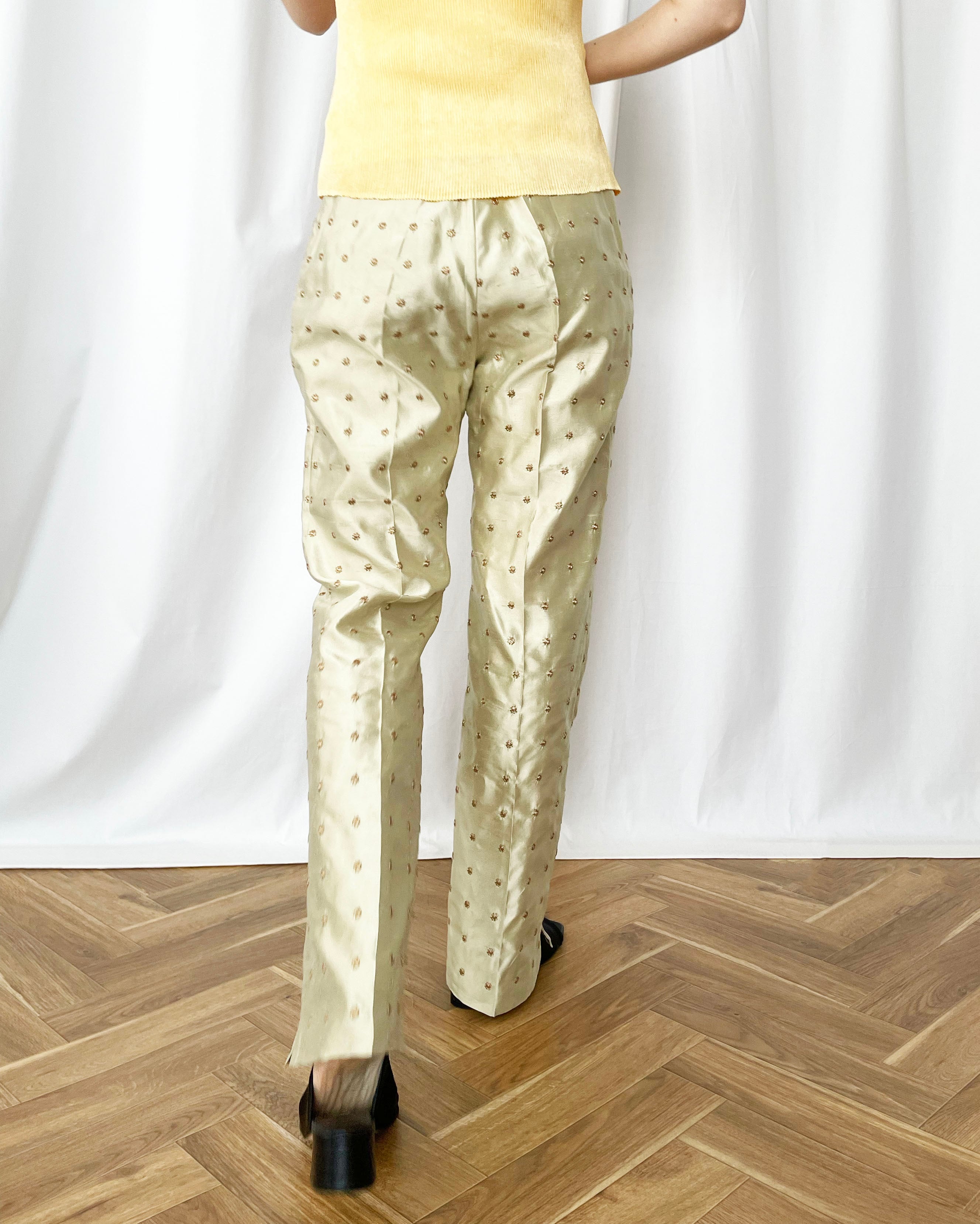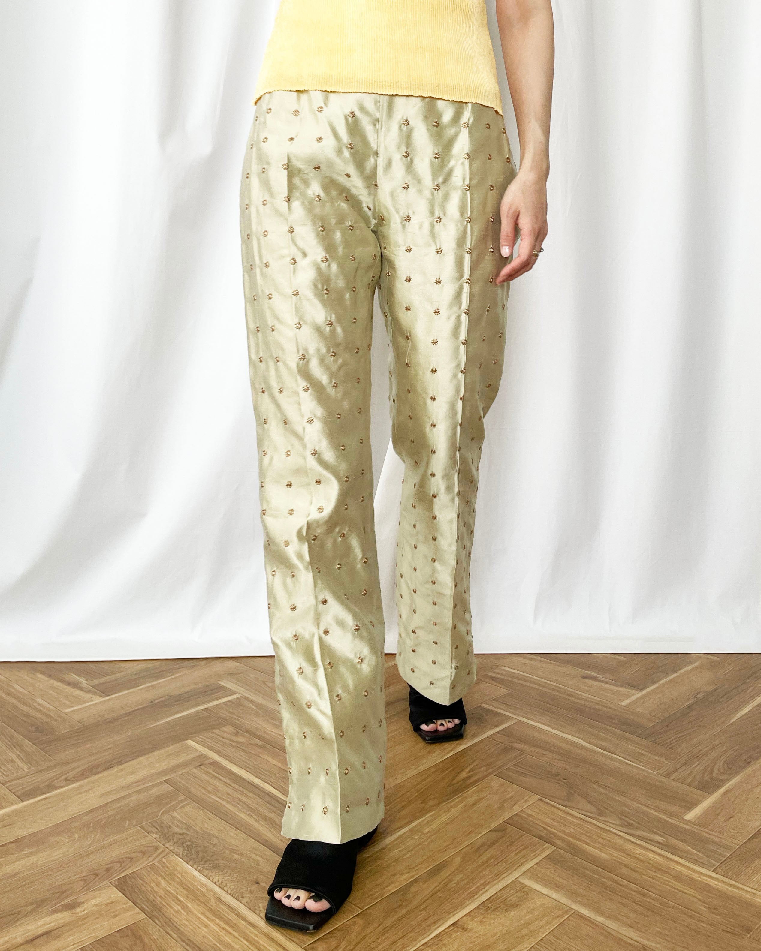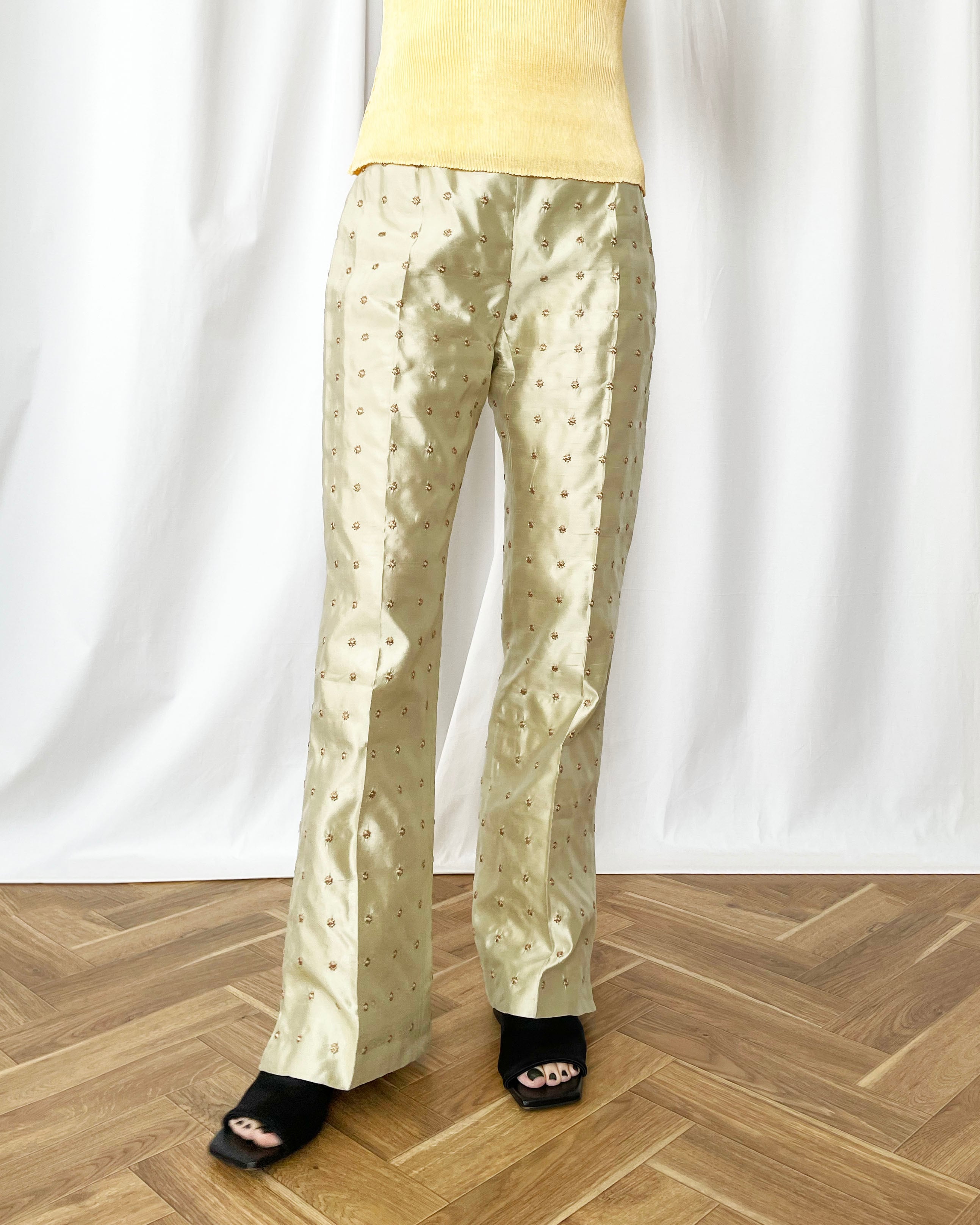90s ITALY embroidery silk pants
