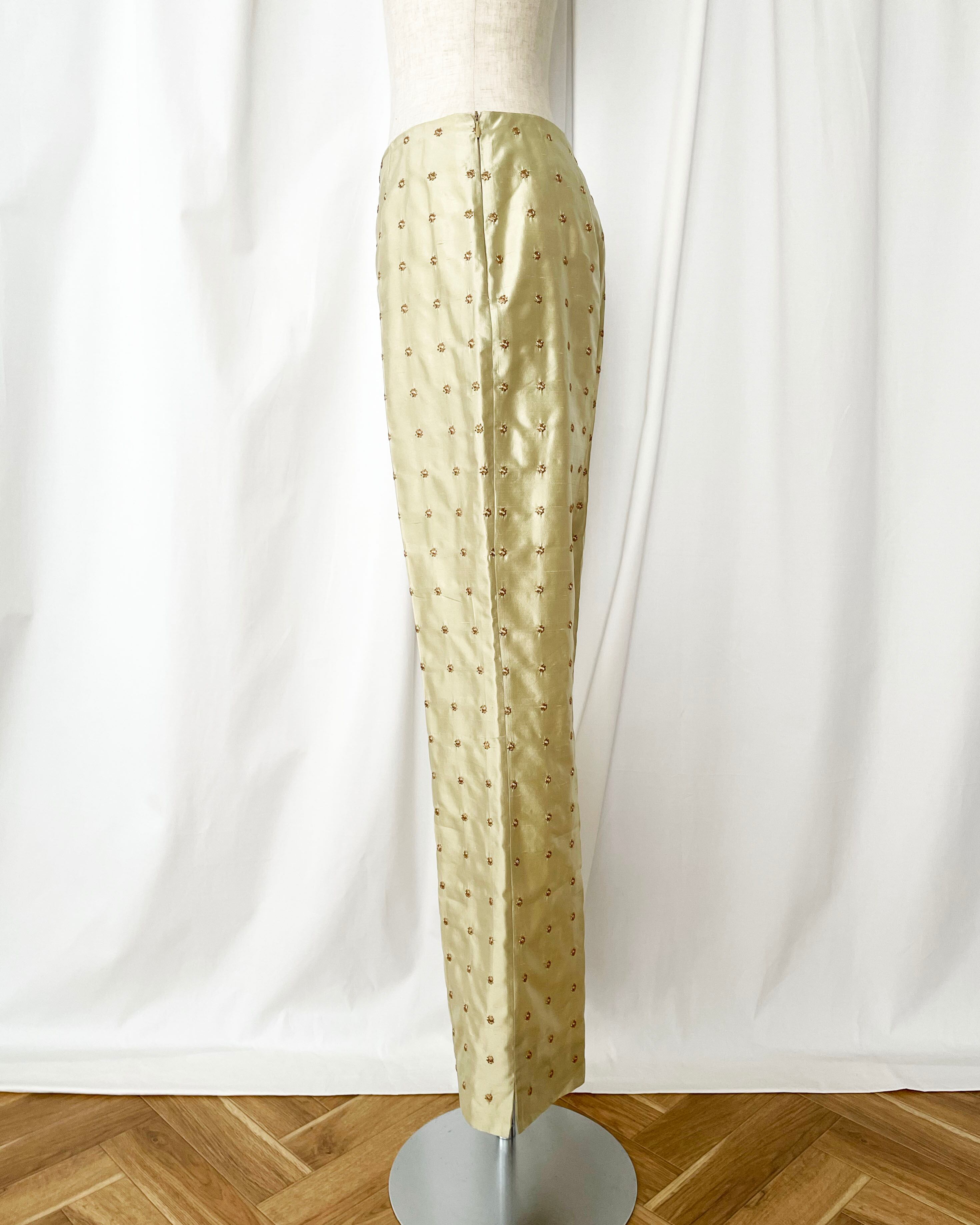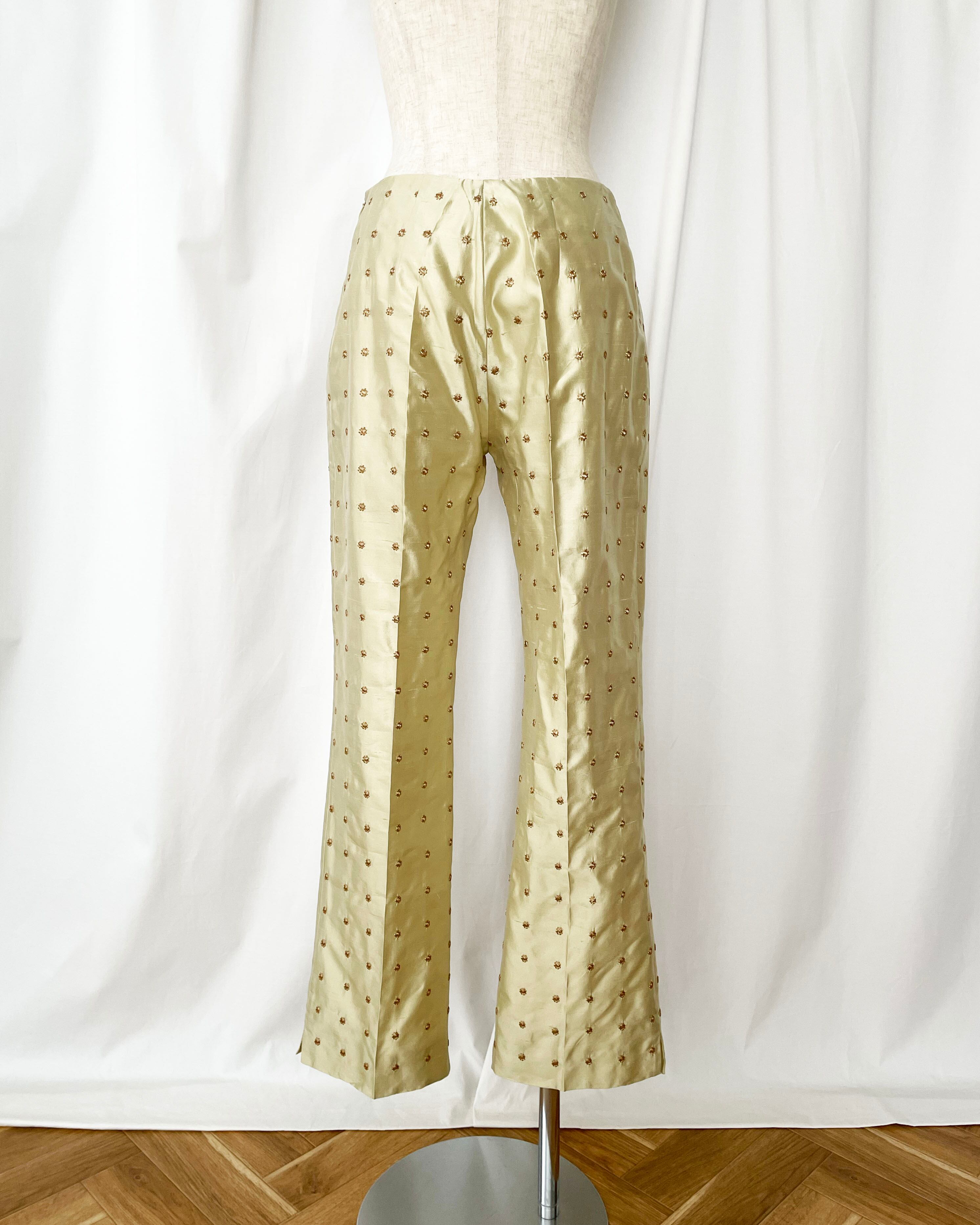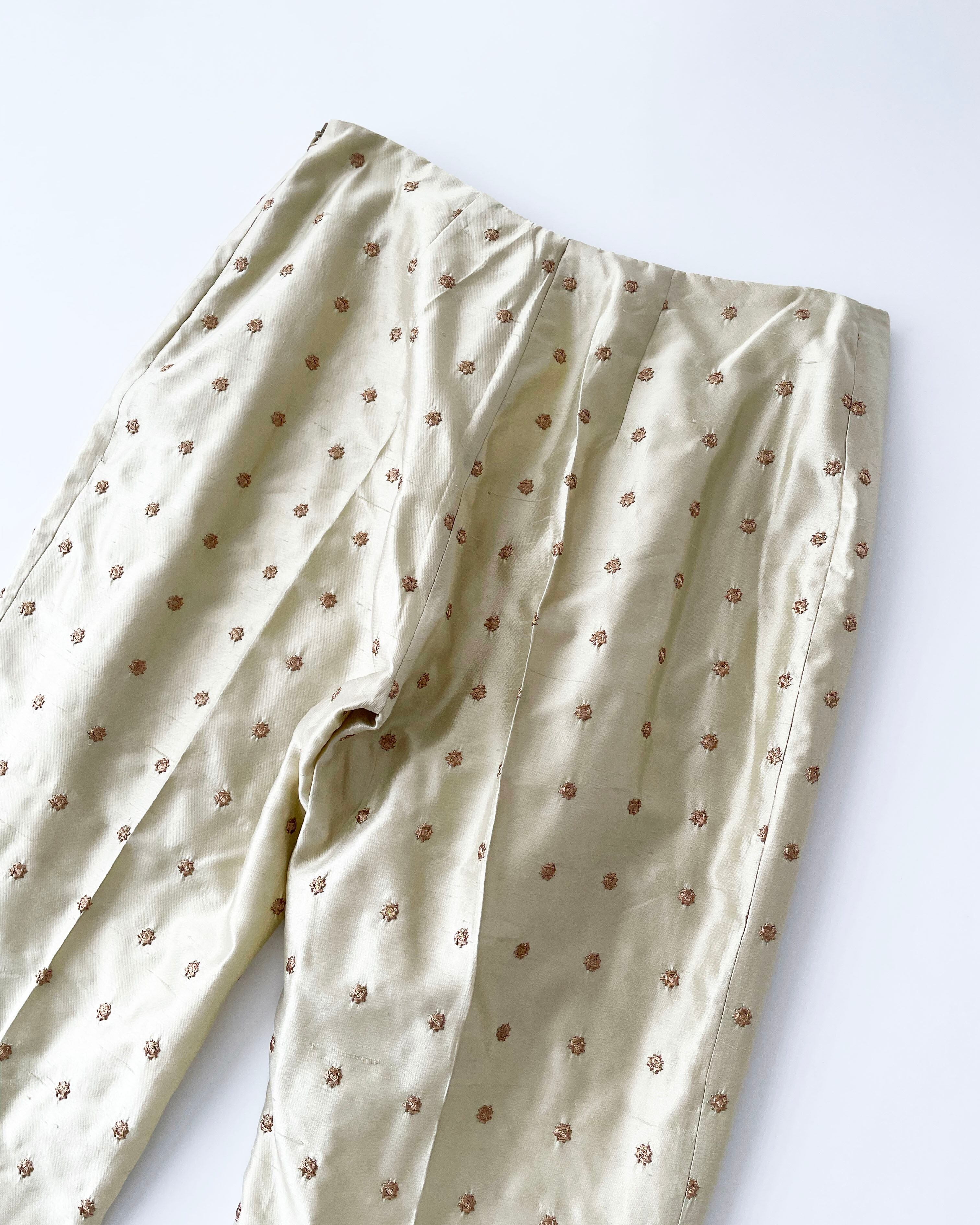90s ITALY embroidery silk pants